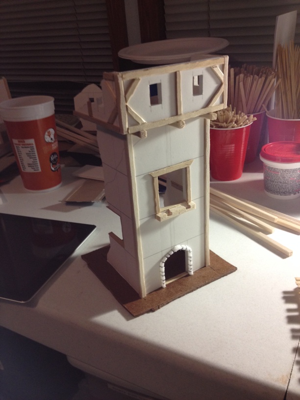 This is a guard tower that I just started working on. You can see the mount on the front of the building about halfway up.