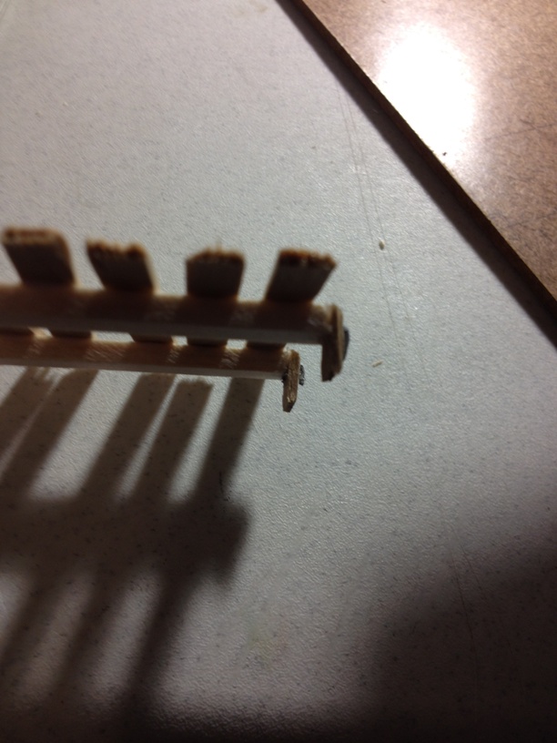 Close up of the ends of the bridge. These tabs slide right into the slots on the mount. Also pinned for strength.