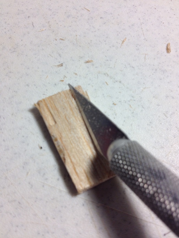 If you are like me and do not have a hobby sized miter box, use a carpenter square, if you have one, to make sure that you get good 45 degree angles on your cuts, and cut nice and SLOW to make sure everything is straight. If your cuts on angled pieces is not straight, it is very difficult to make things fit right.