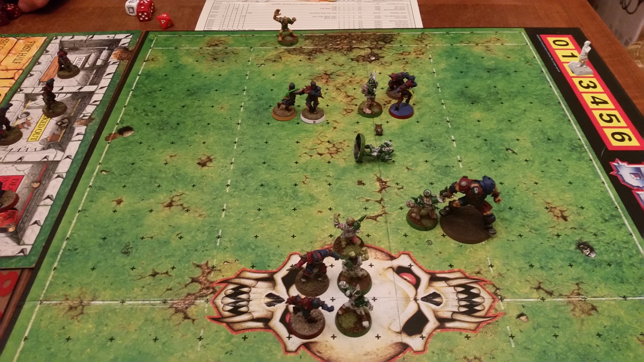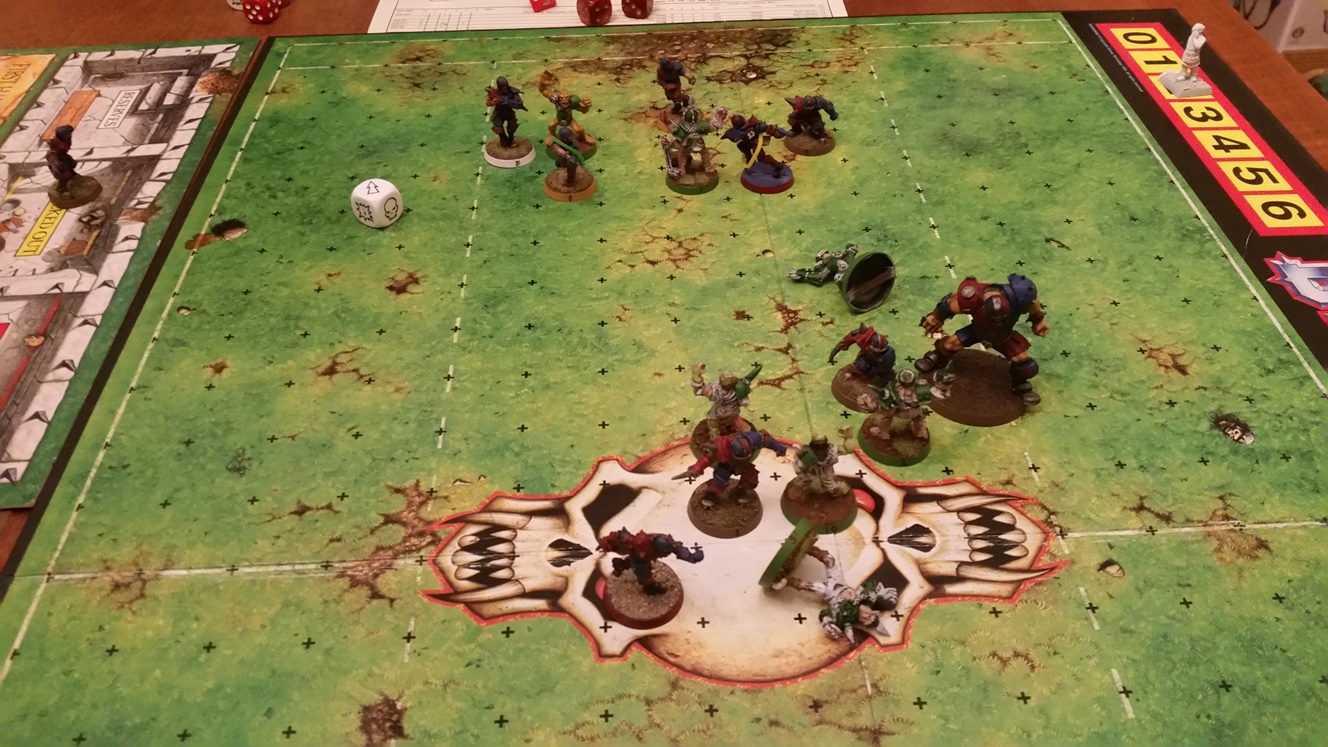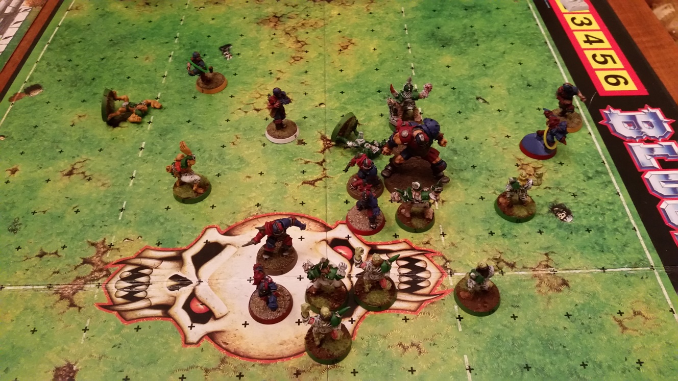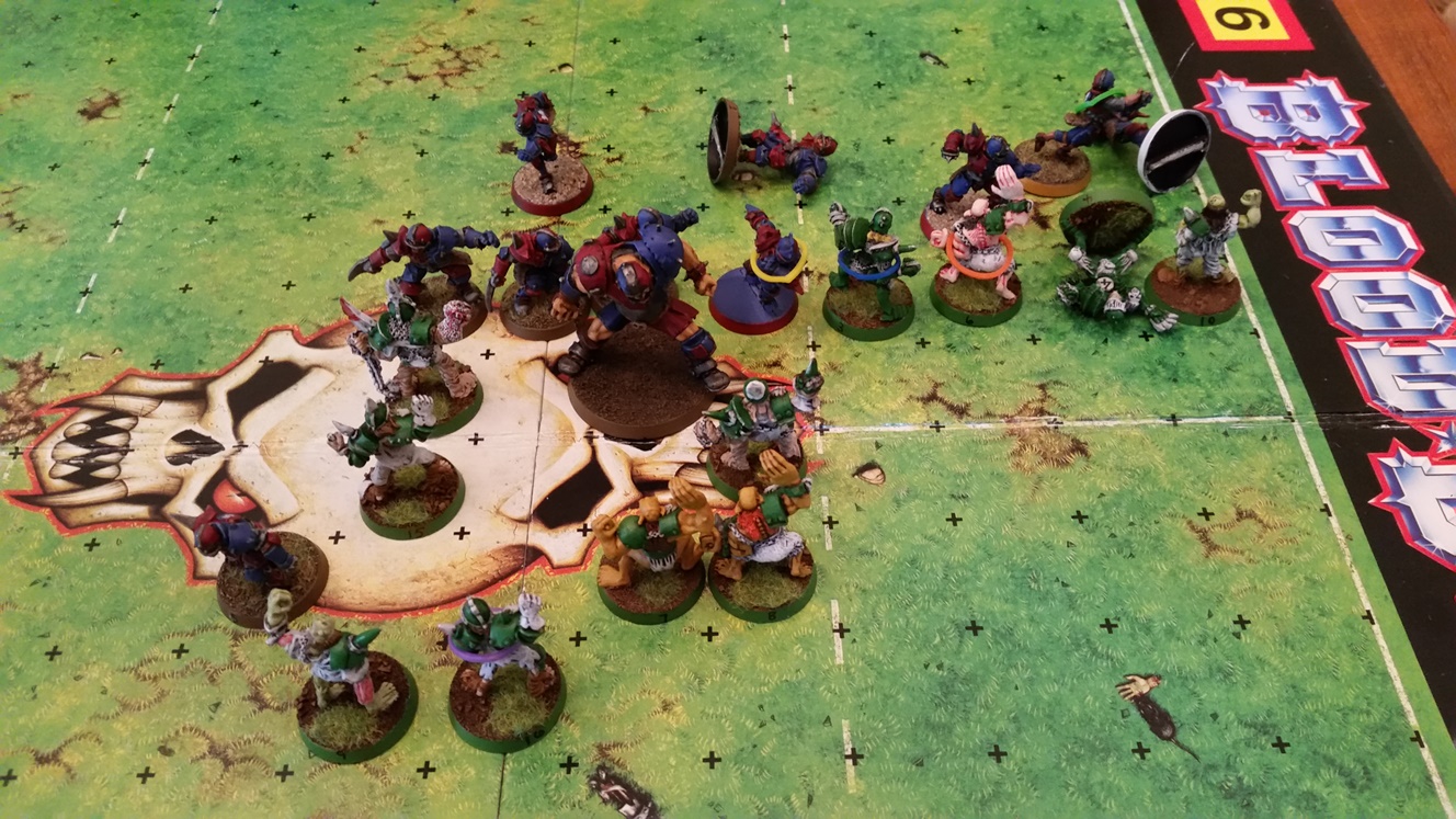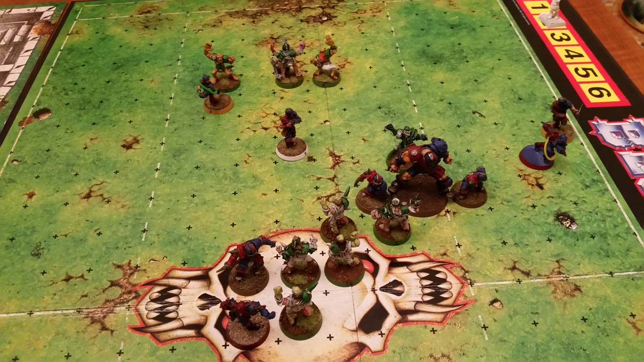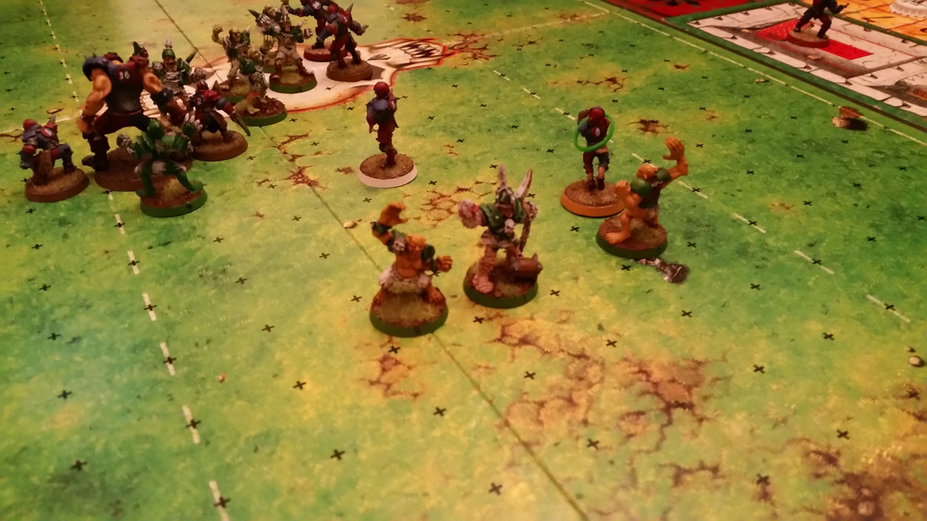 The first of many turns that ends with Siamtu the Rotten laying on the pitch. The ghouls do not like that ogre so close…