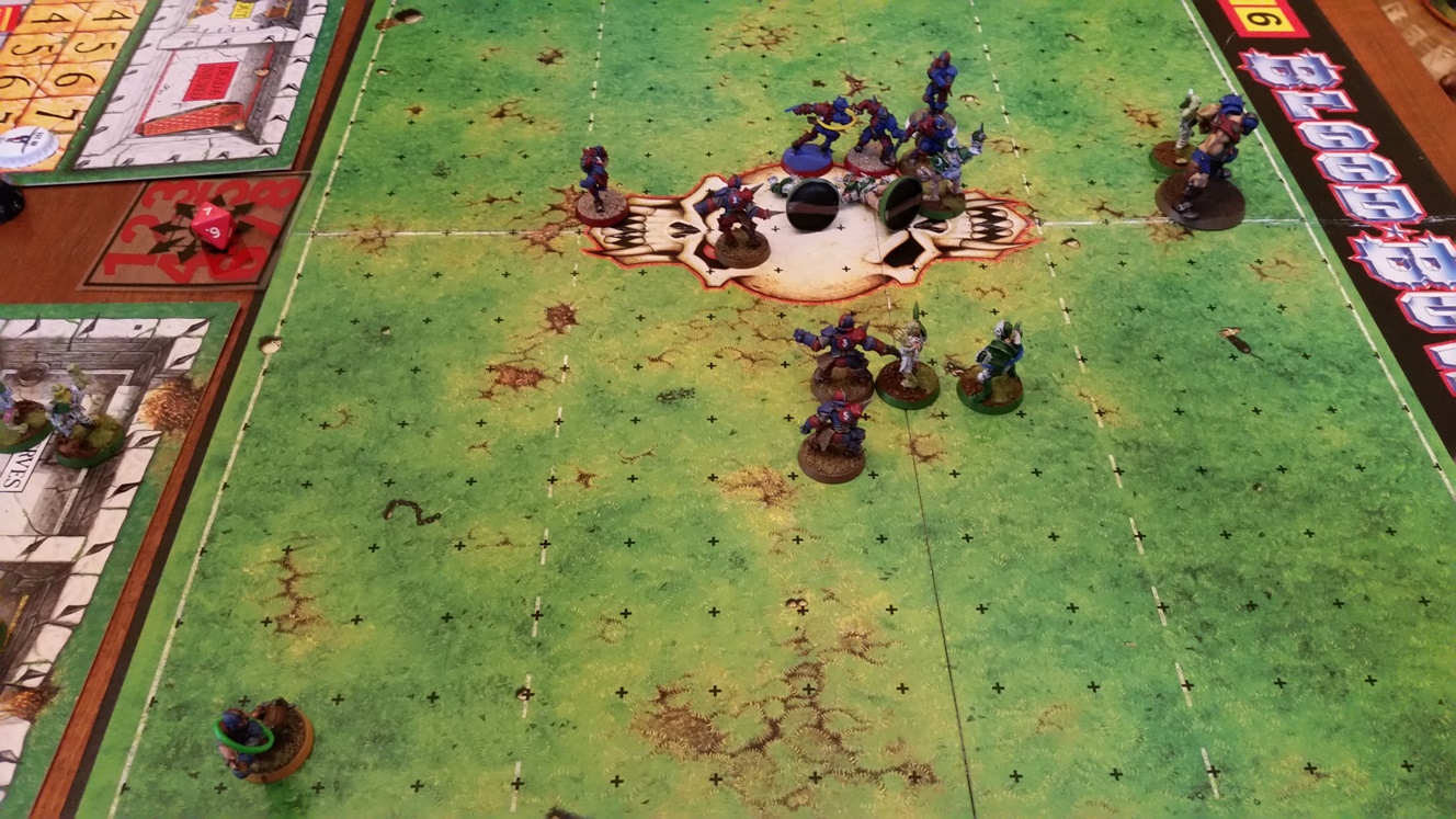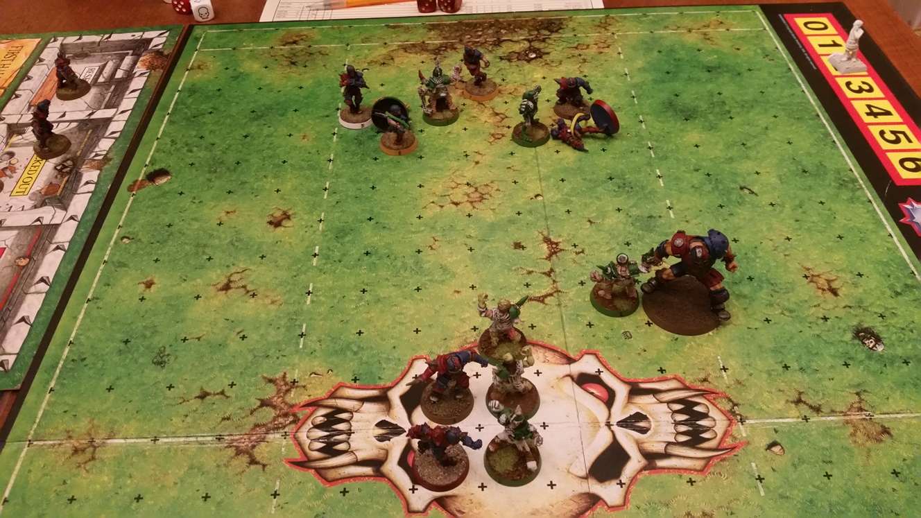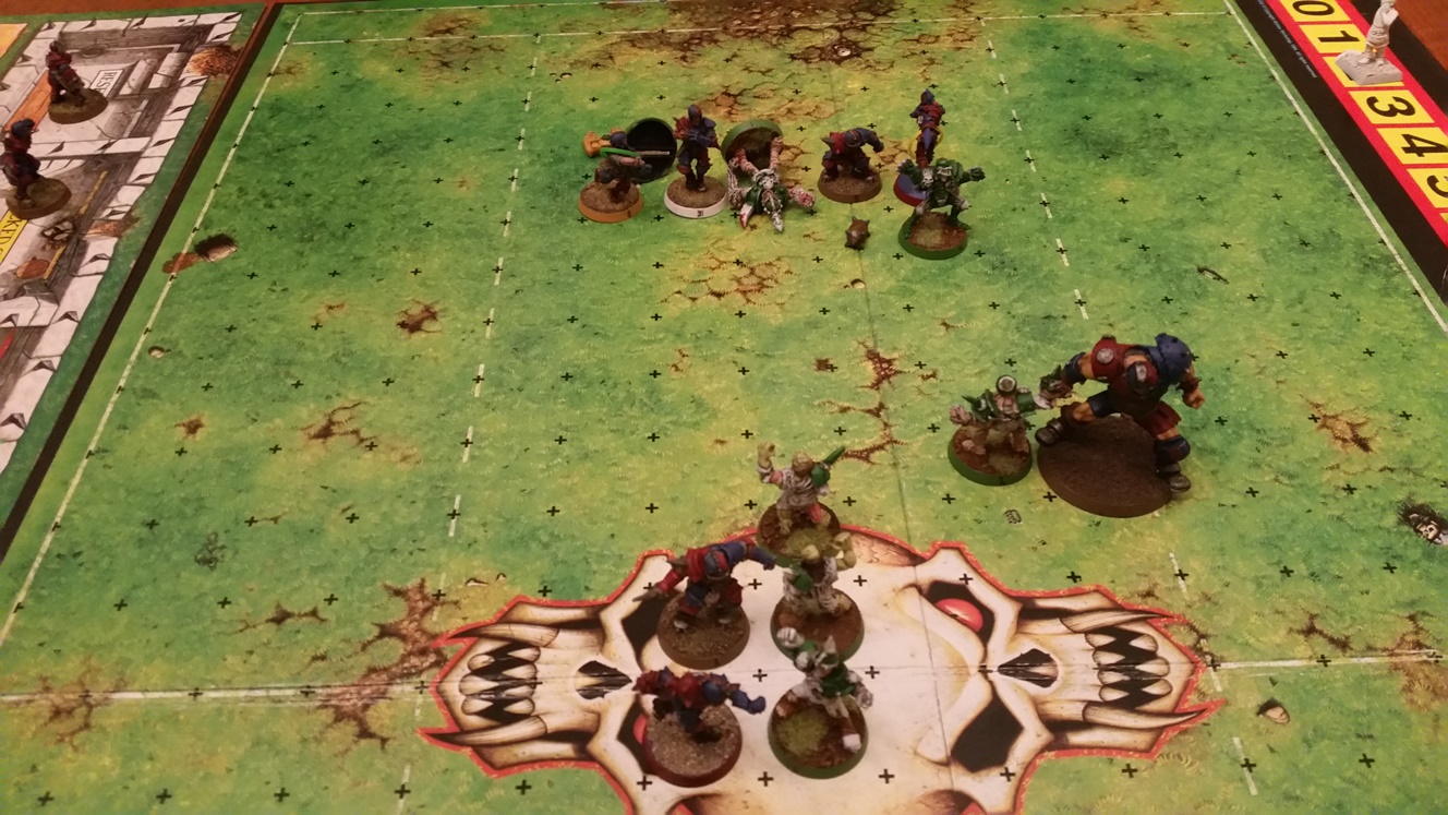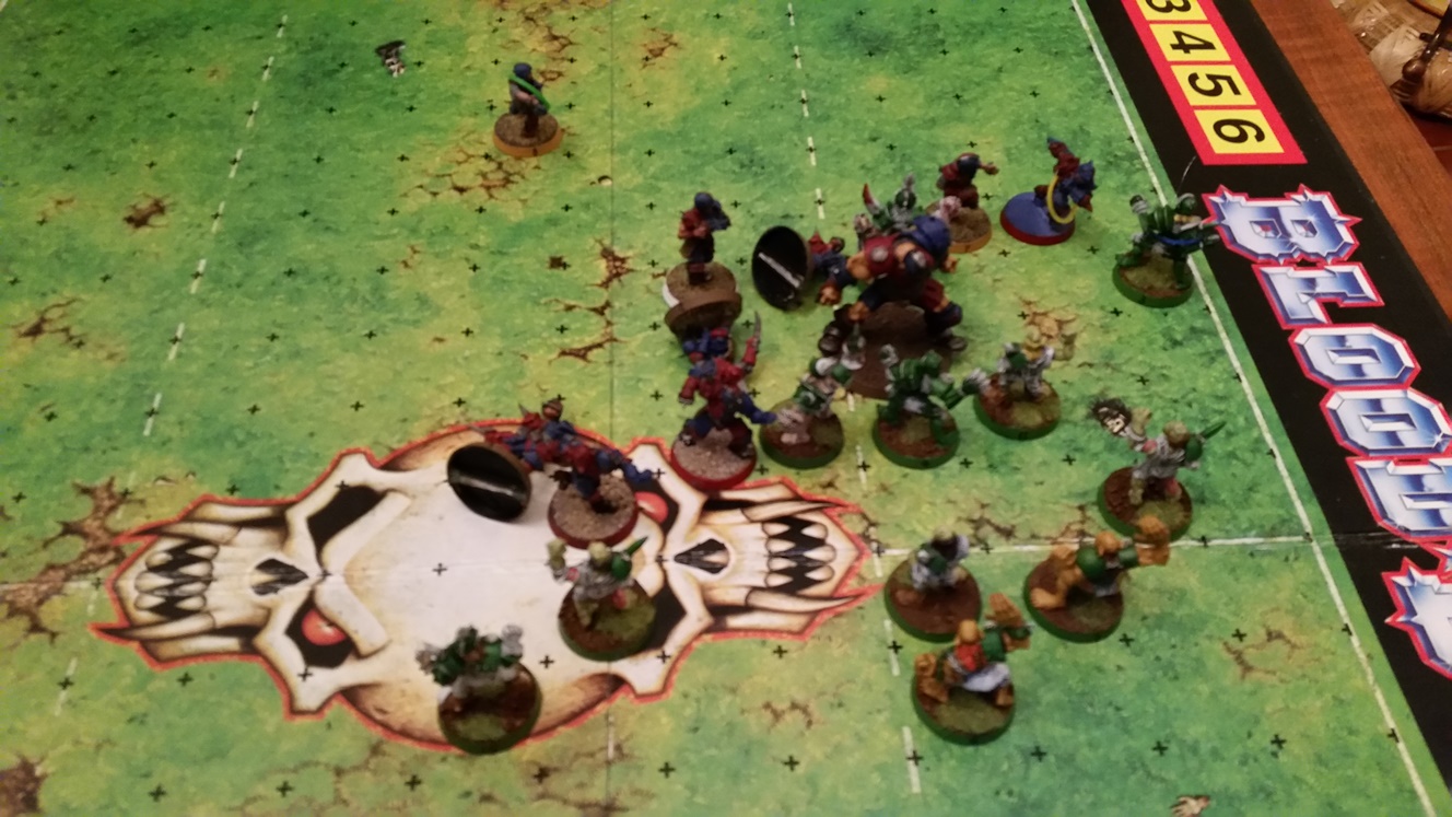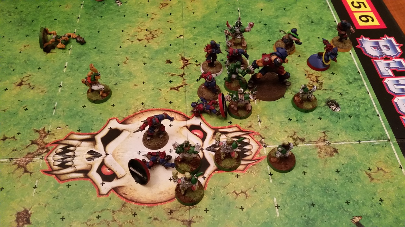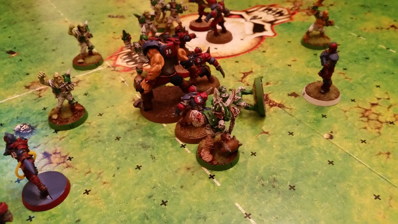 The first of many turns that ends with Siamtu the Rotten laying on the pitch. The ghouls do not like that ogre so close…
