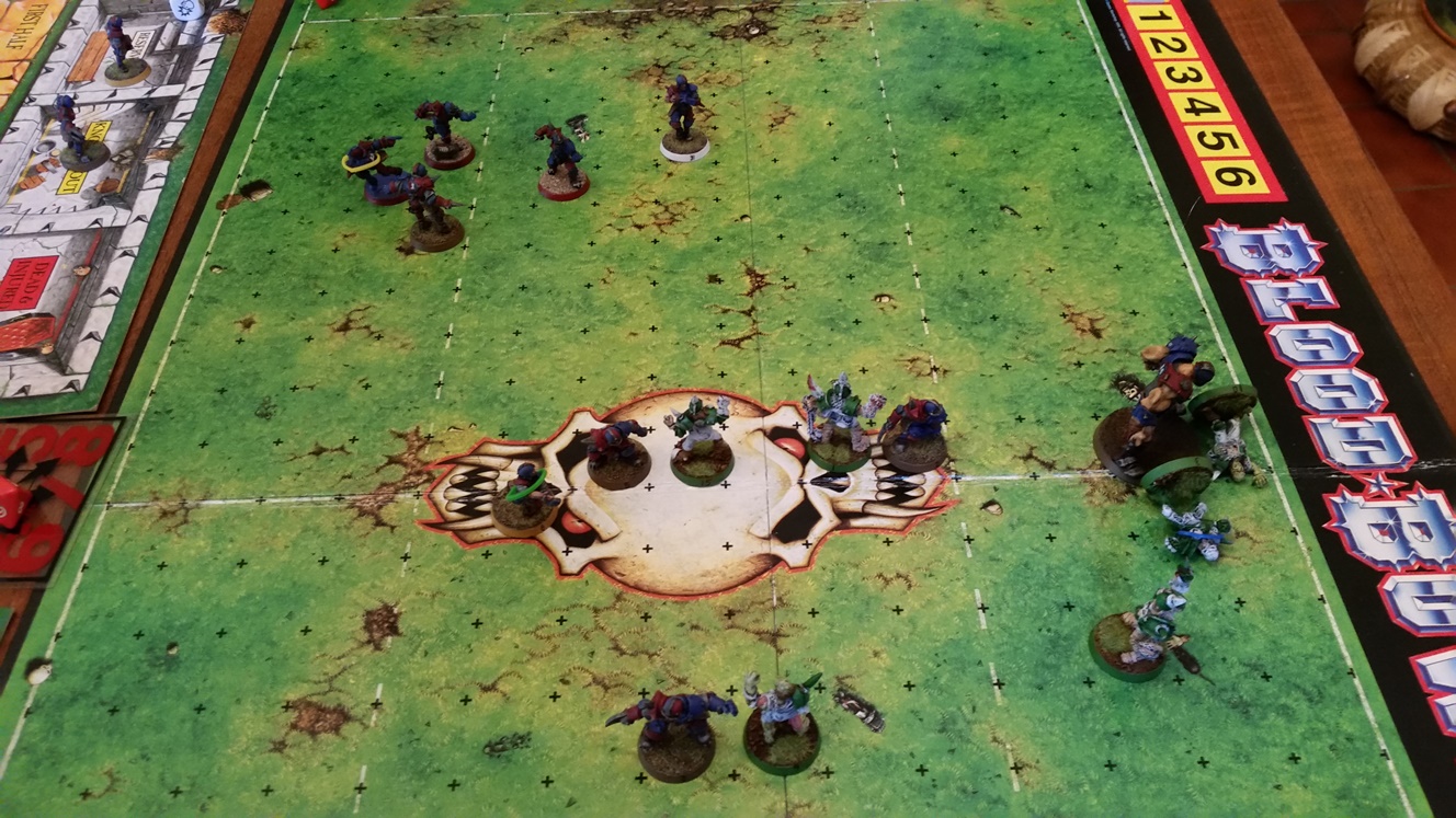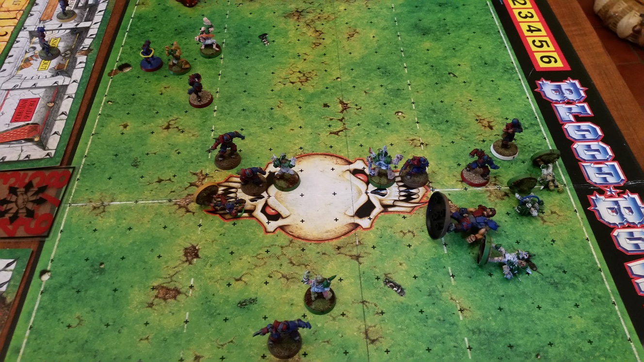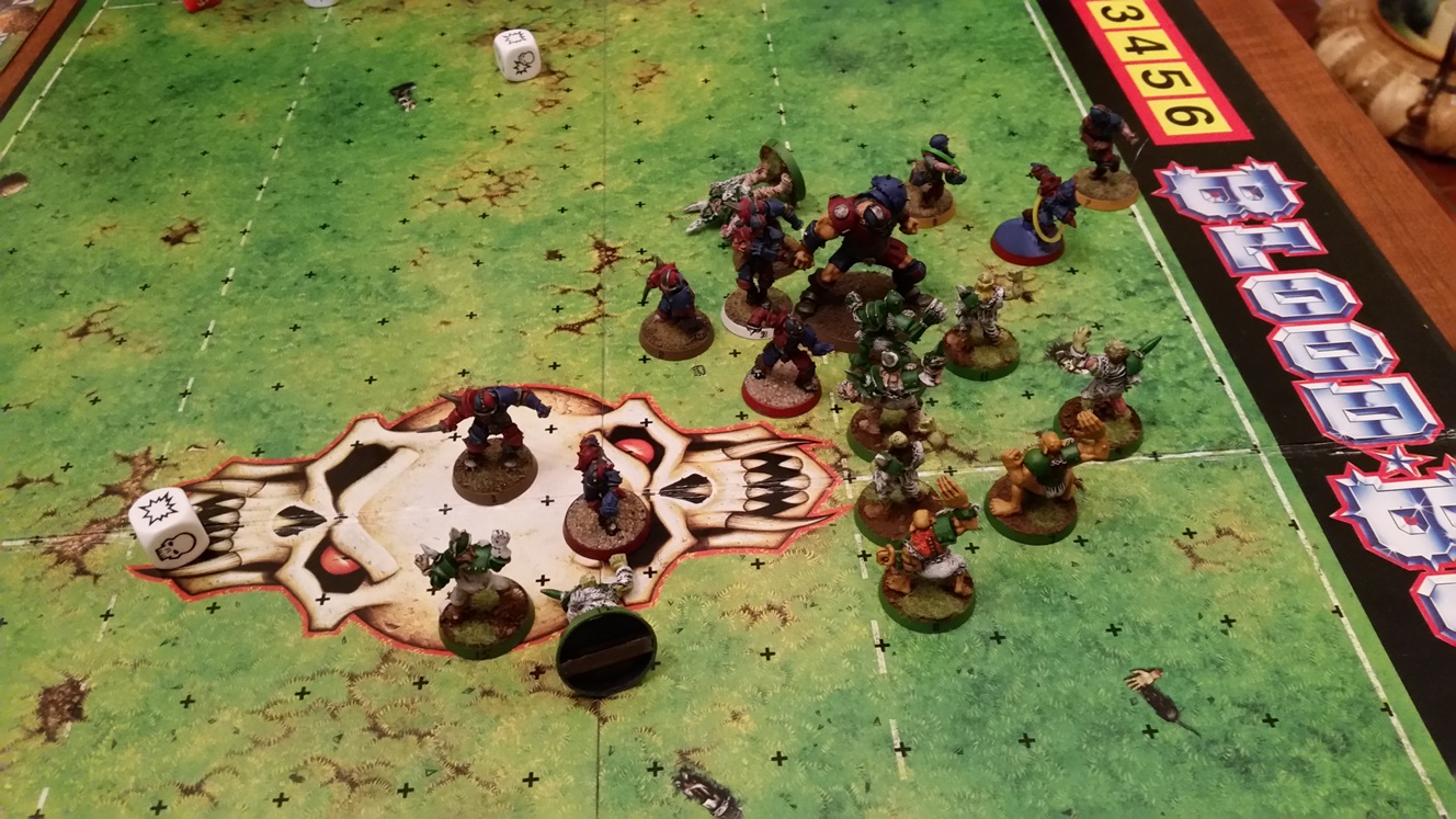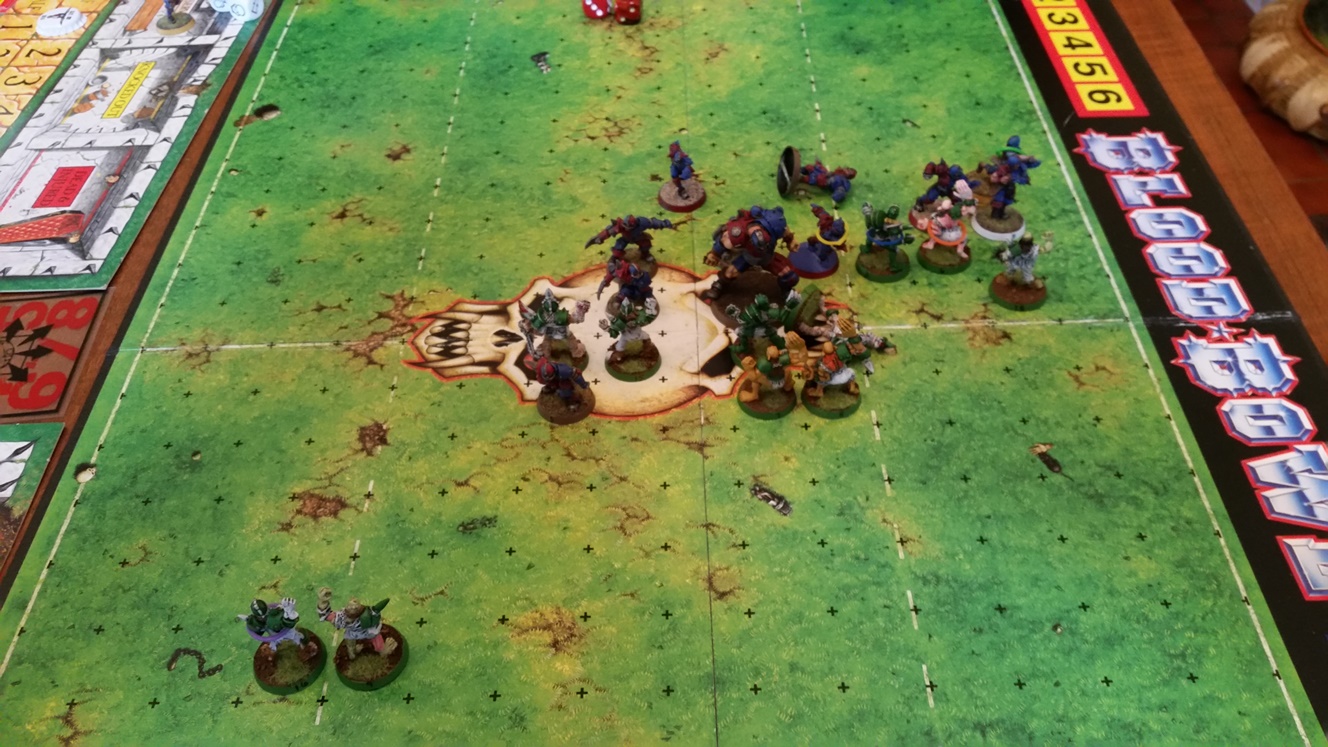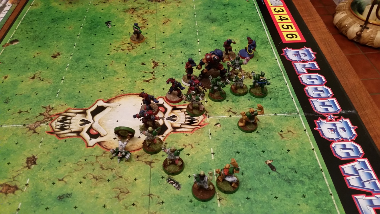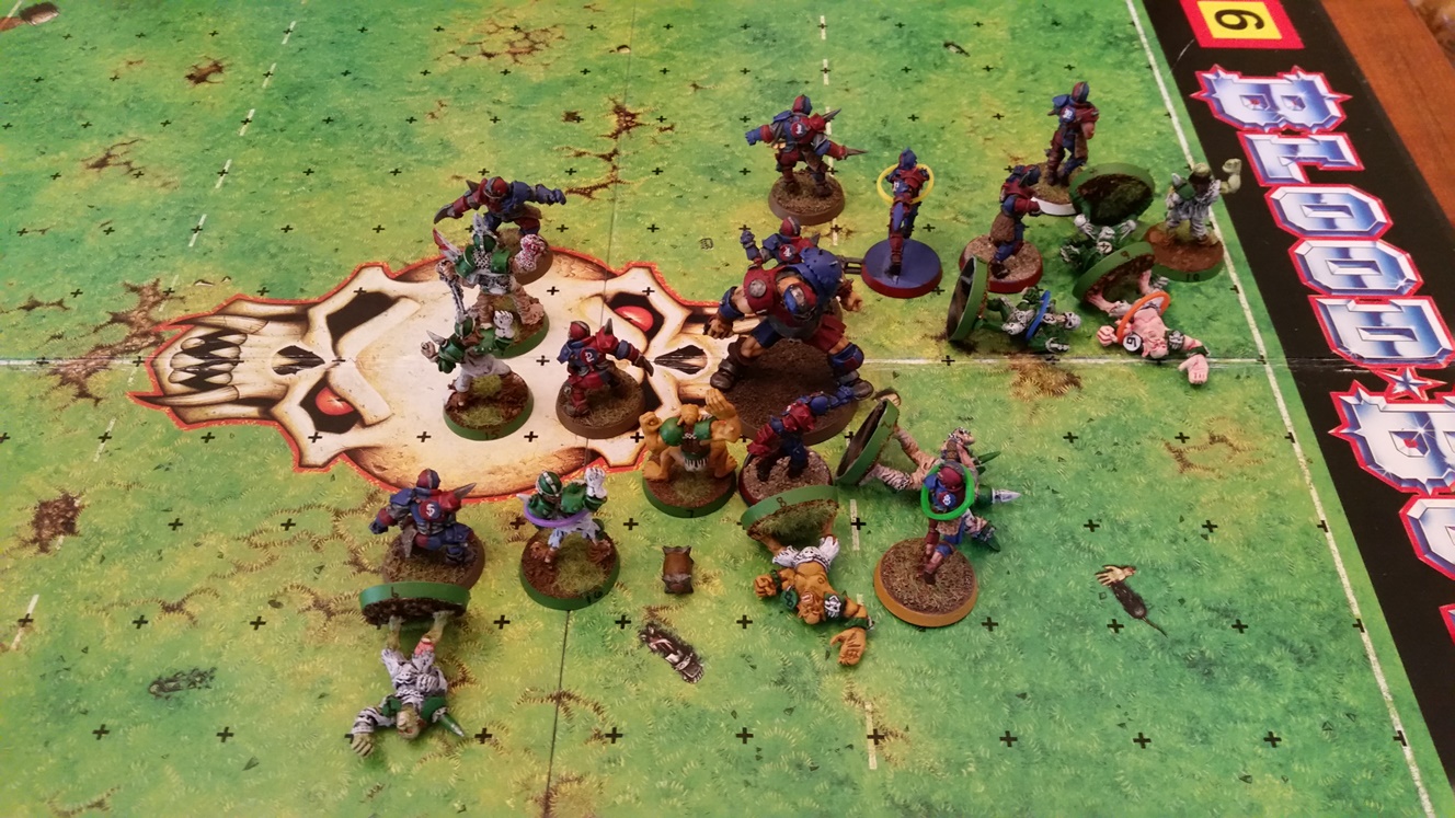 The first of many turns that ends with Siamtu the Rotten laying on the pitch. The ghouls do not like that ogre so close…