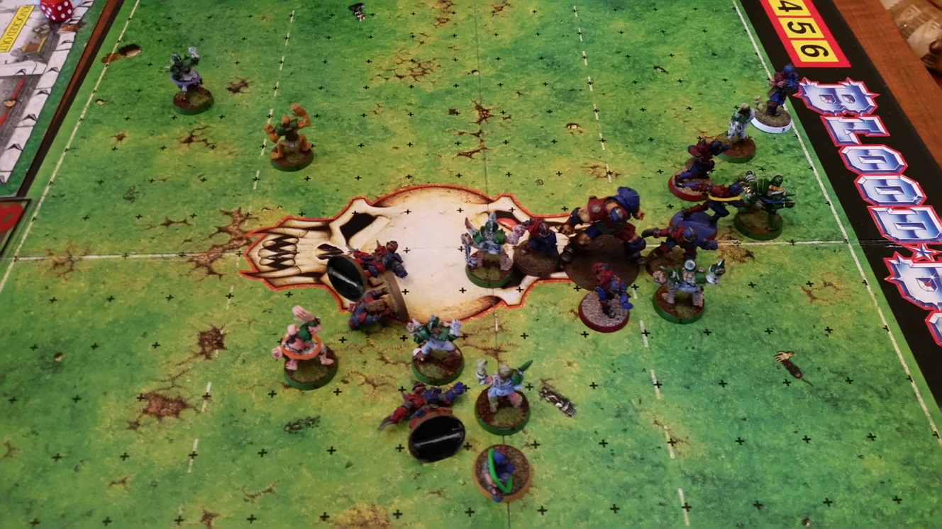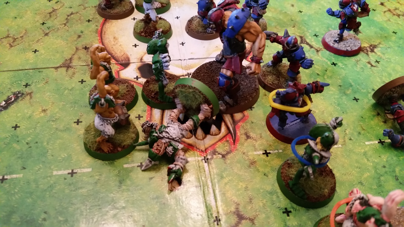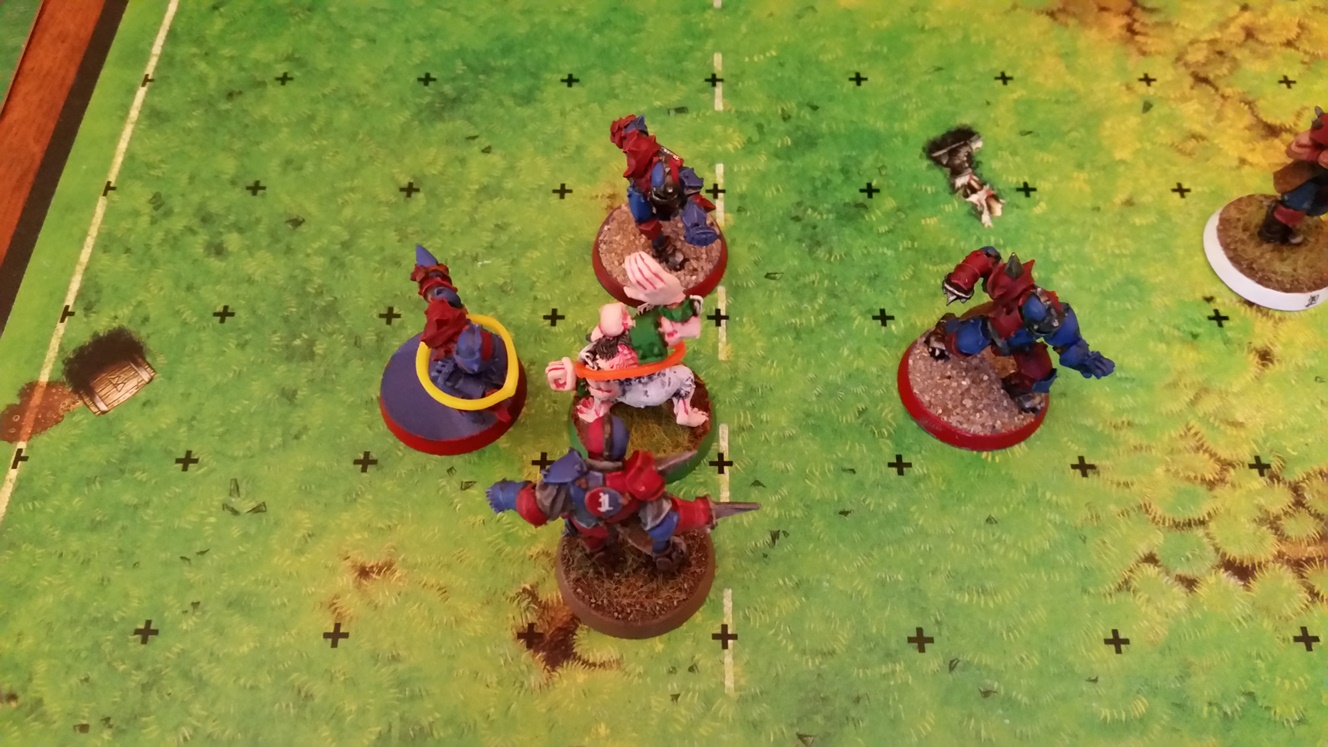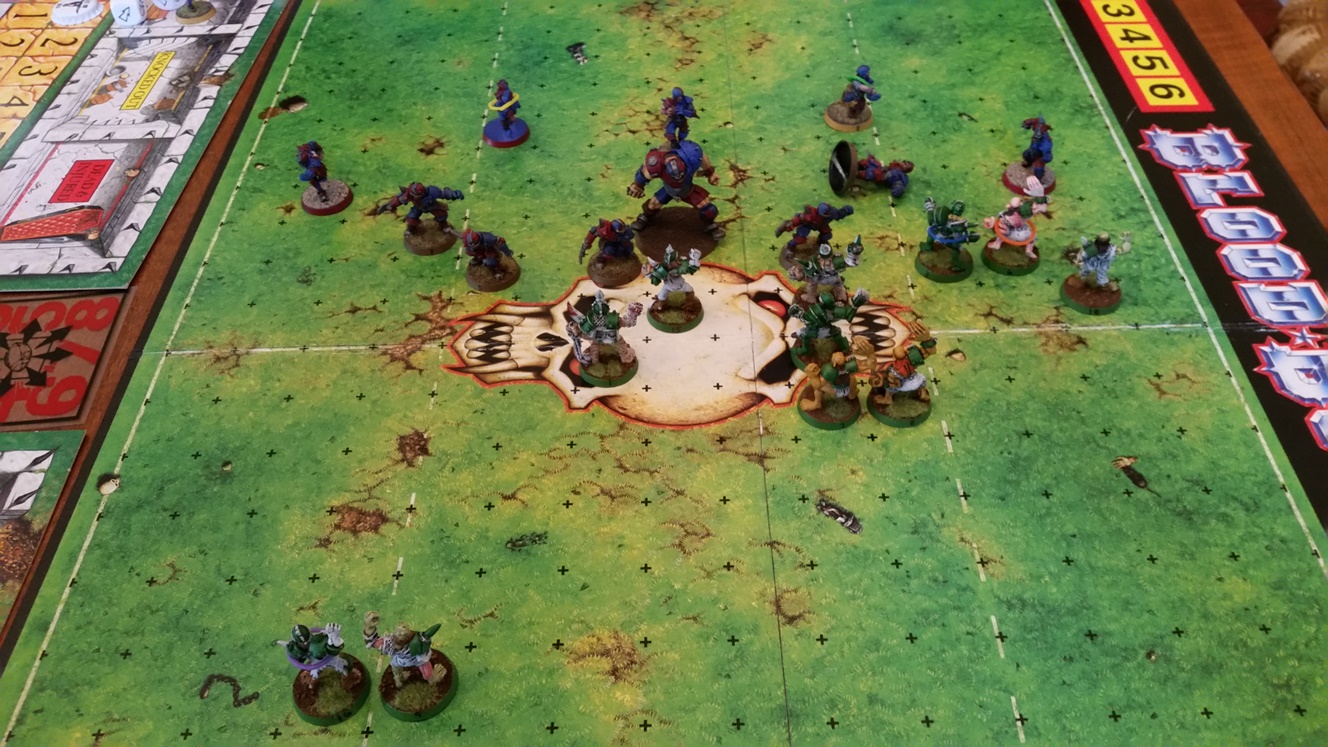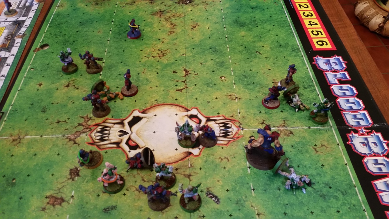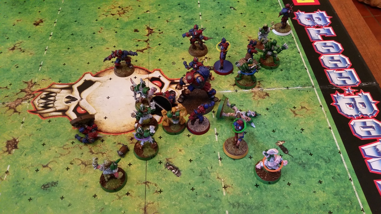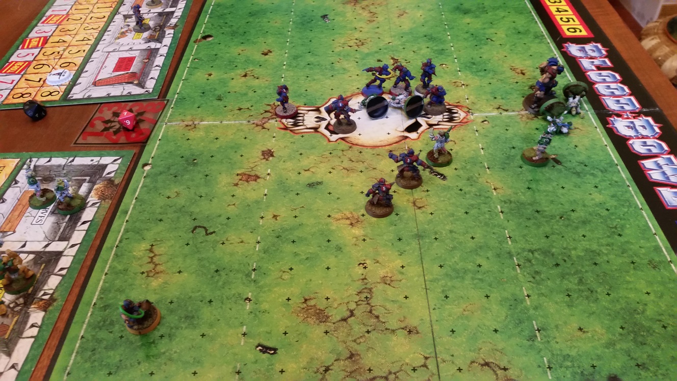 The first of many turns that ends with Siamtu the Rotten laying on the pitch. The ghouls do not like that ogre so close…