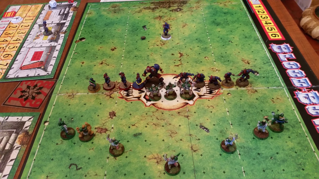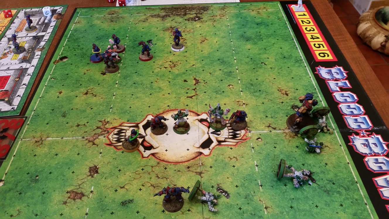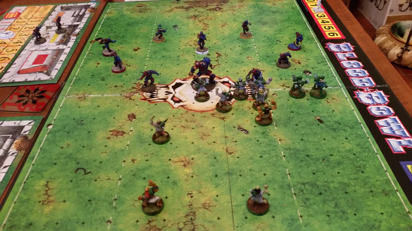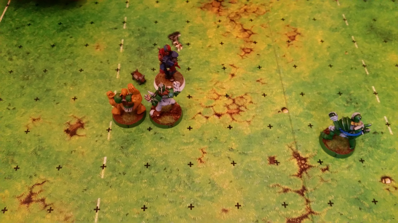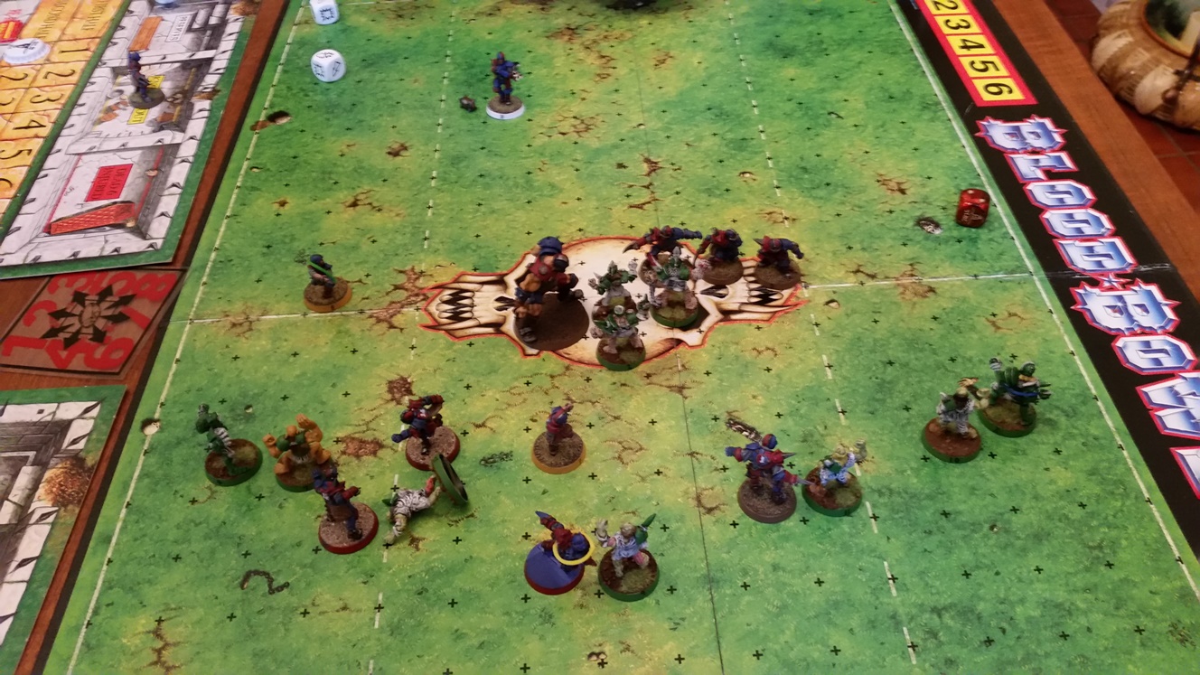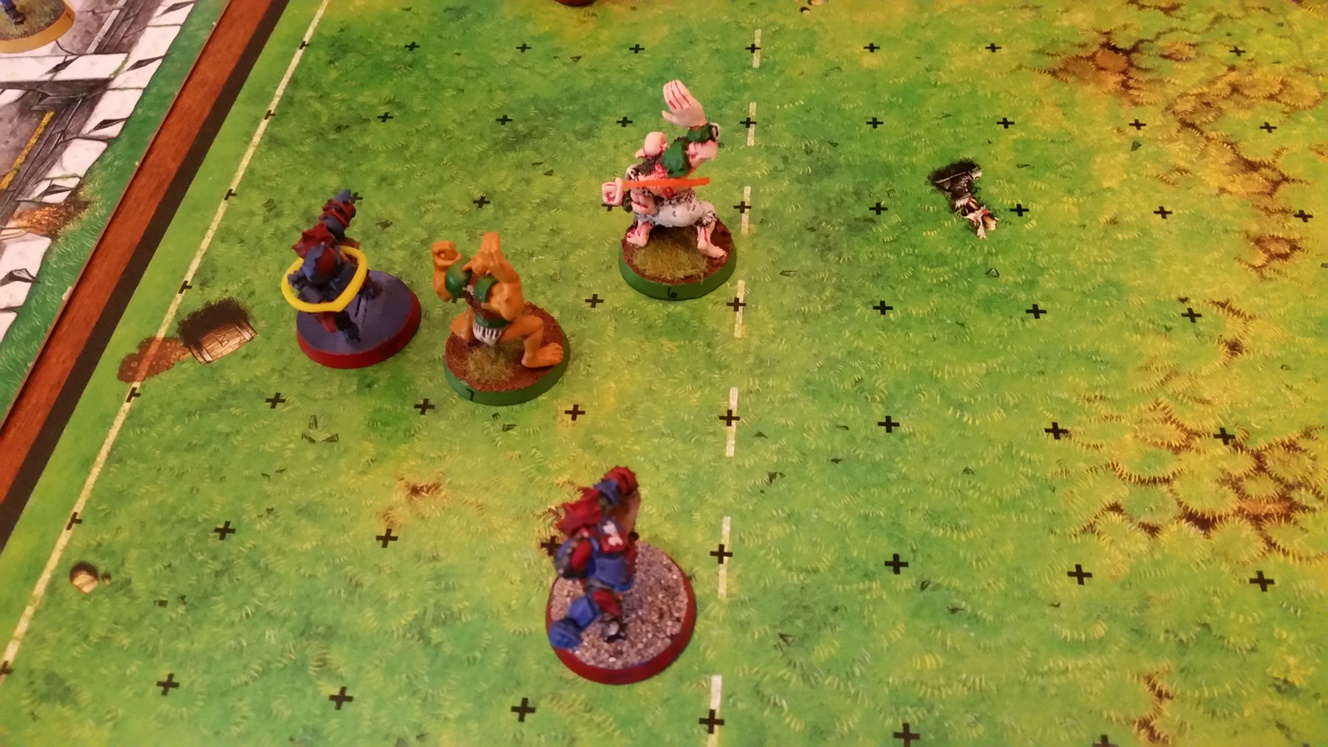 The first of many turns that ends with Siamtu the Rotten laying on the pitch. The ghouls do not like that ogre so close…