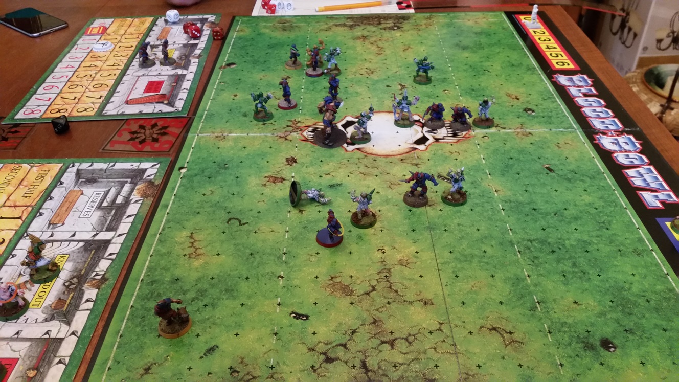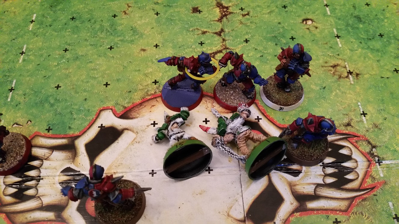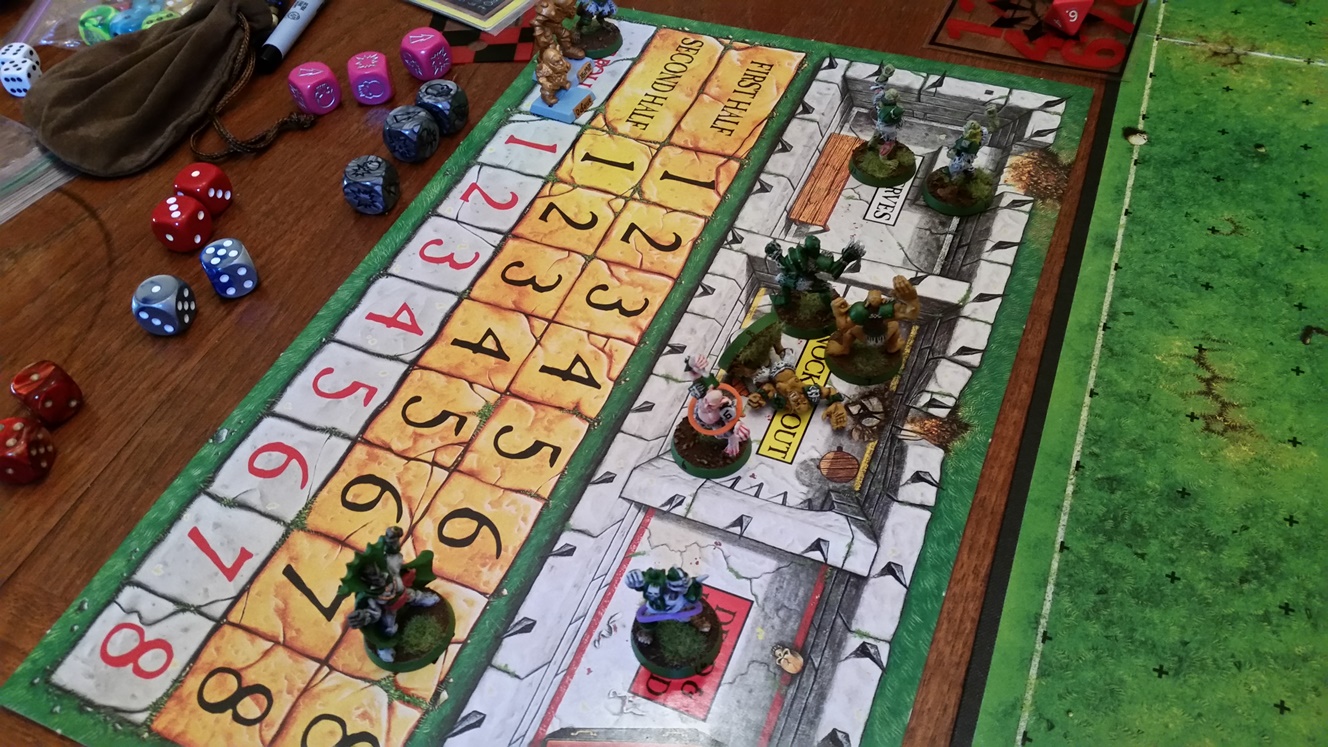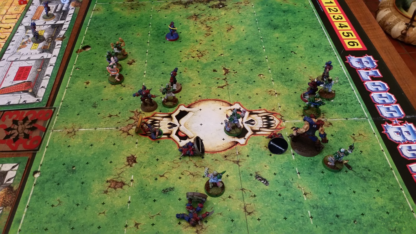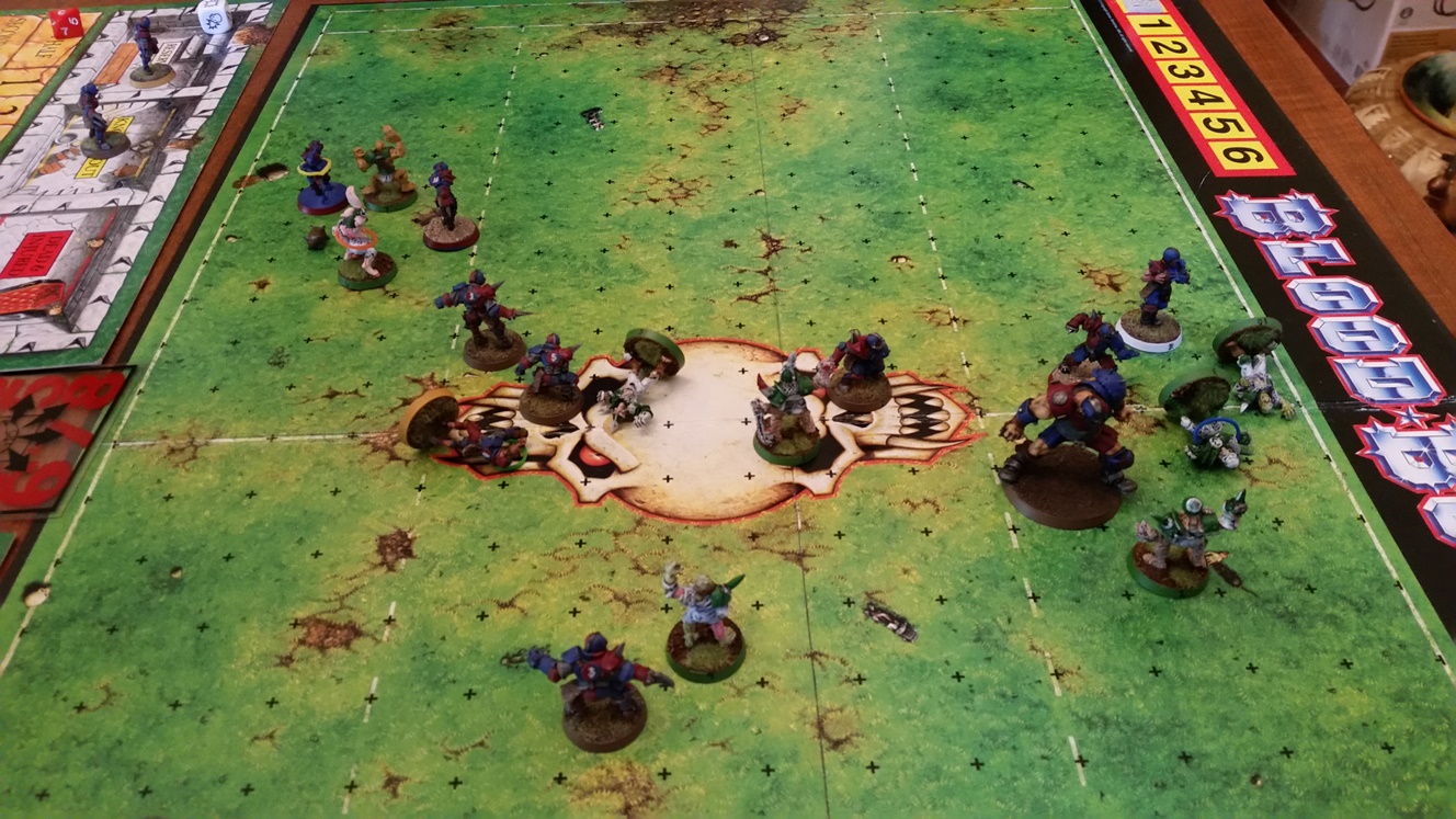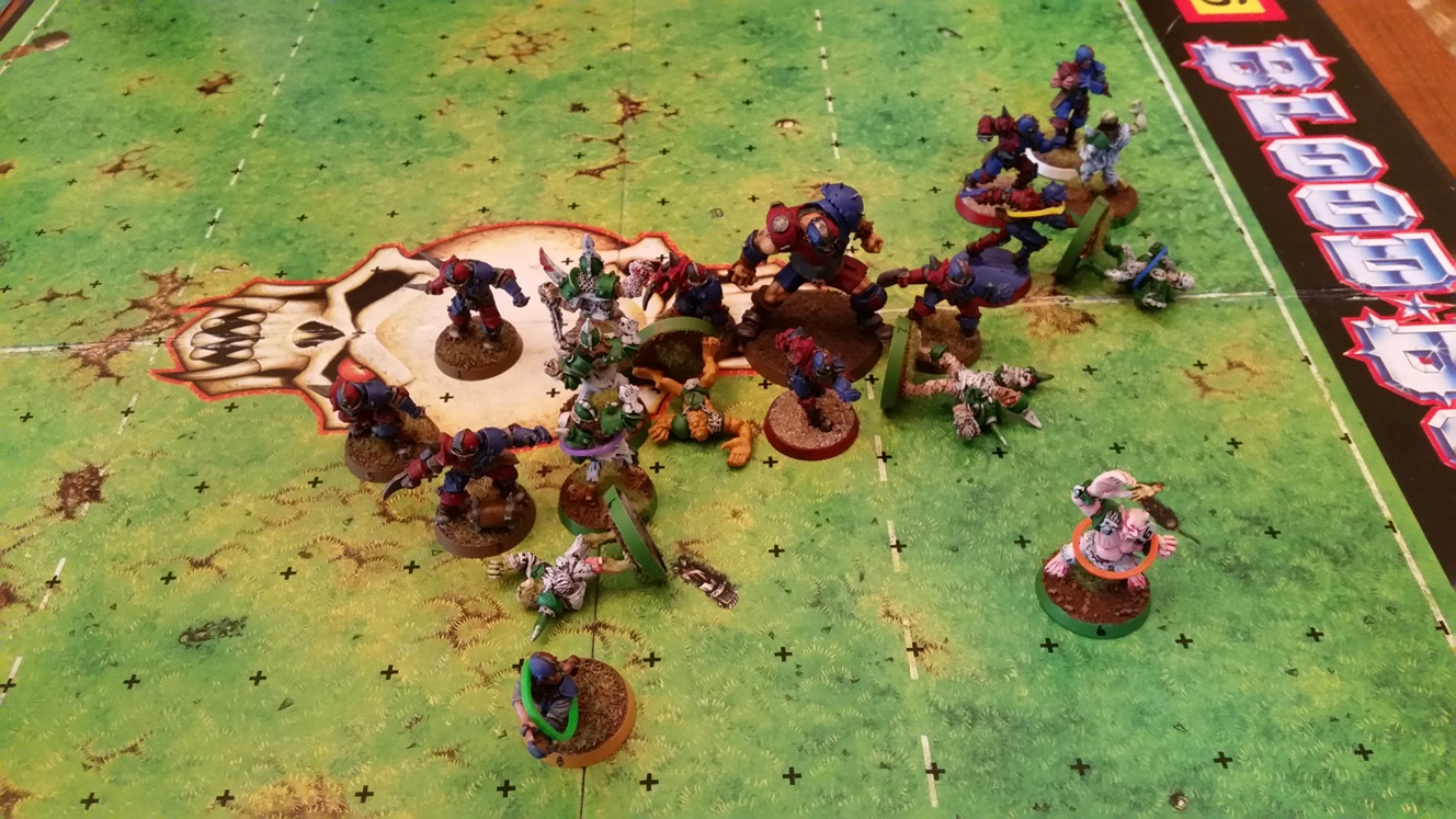 The first of many turns that ends with Siamtu the Rotten laying on the pitch. The ghouls do not like that ogre so close…