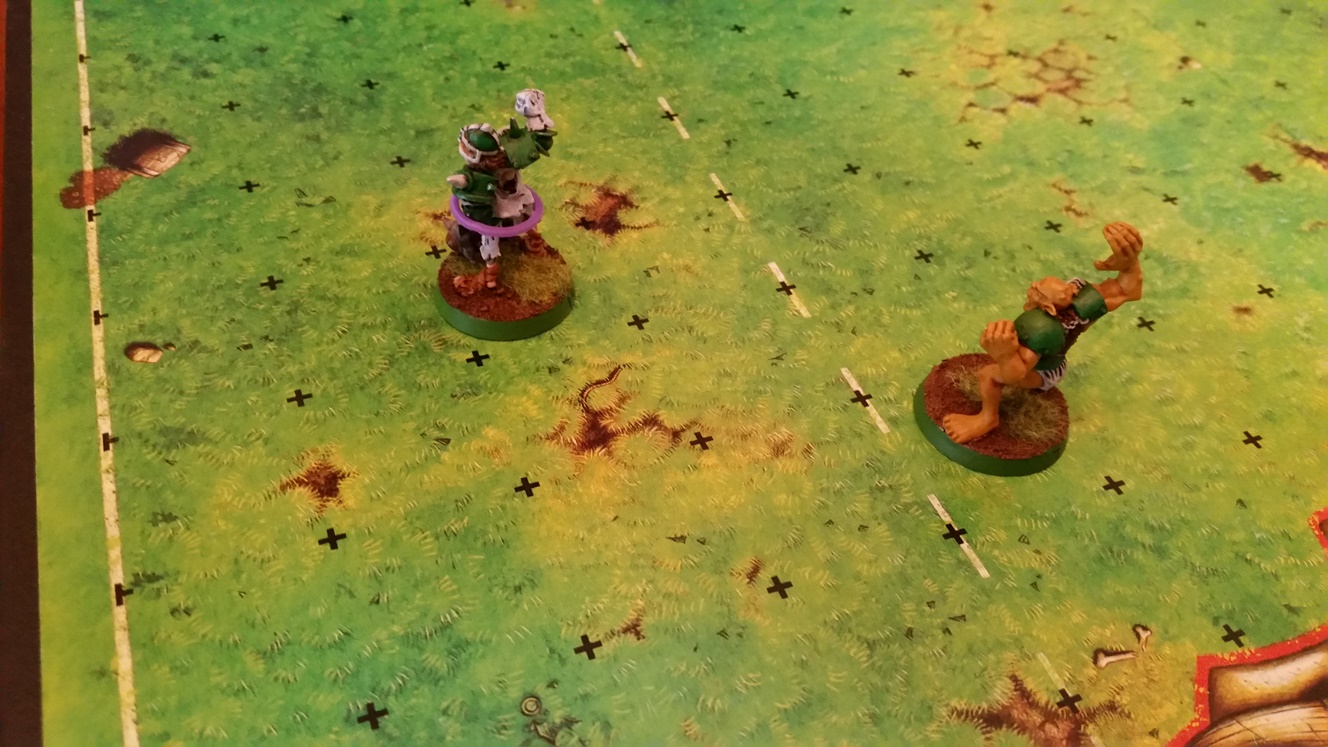 Raiders turn 1: The Raiders managed to penetrate fairly deeply into the Hex side of the pitch, but the Raiders’ star thrower managed to fail picking up the ball before too many hits could be thrown.
