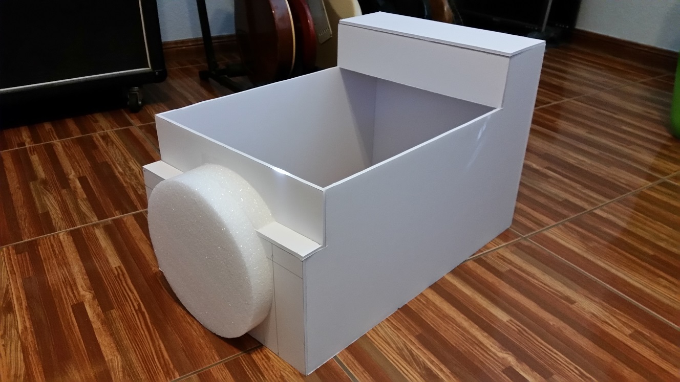 The first thing I did was go and buy several sheets of foam core. I decided to use foam core because it is very lightweight, and I am very familiar with building with it. I had an idea about how I wanted to build things, but not having made a costume before, I did not really have any basis for comparison on size of pieces, so I did things visually. I had my son stand in front of me, and I just started measuring him and then drawing things out on the foam core. Then I held the foam core up to him and made a few adjustments that I decided were needed to make things fit his body. Once I was happy with the individual pieces, I started cutting. As I do with terrain, I used white glue to join all the pieces together. This is what I had on that first day.