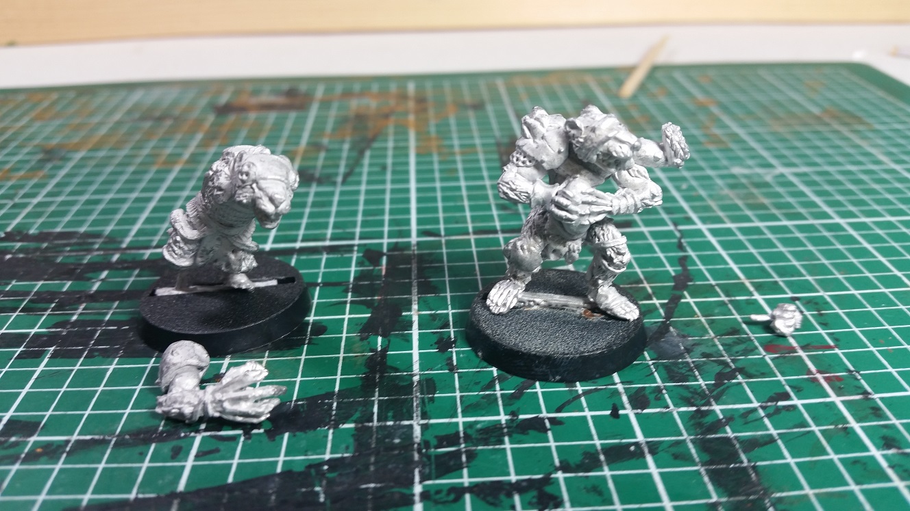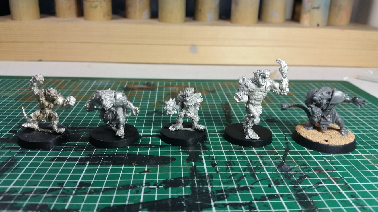 The Skaven on the left is missing an arm, and the three armed Skaven on the right had the hand of his third arm break off in shipping. I have reached out to Goblin Guild to see if I can get a replacement for the missing arm and for the mini with the broken hand. I could try to fix the hand myself, but my Green Stuff skills leave a LOT to be desired.