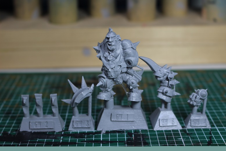 All the pieces laid out. As with Varag, and unlike Zug, Morg does not come with a hand option that is not holding the ball. Boo!