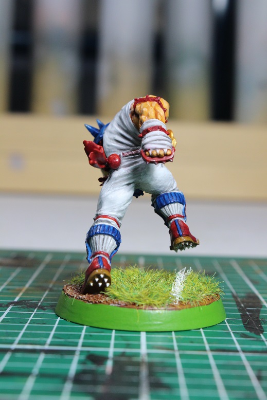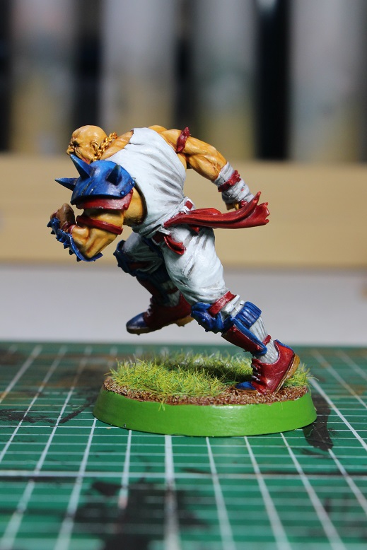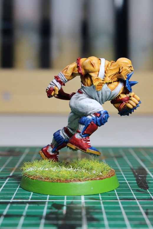 I know it has been a while since I have actually shown a painted mini, and there is a good reason for that… I FRIKKIN HATE PAINTING MINIS. But seriously, this weekend some friends and I are taking a road trip up to Oklahoma for the annual Orclahoma Bowl/Spiky Cup tournament weekend held by the ginger badgers of the Both Down Podcast. This will be my third time to participate in Orclahoma/Spiky, and I always have a good time. The reason that this is relevant to painted minis is that one of my good friends is taking a Human team and needed some extra muscle for the tournament. He decided to take Zug, but he did not have a painted Zug mini to field, so i offered to pick up the damn brushes and help him out. So this post is here to show you that I know how to do more than open boxes! When the occasion arises, I actually can manage to paint something.