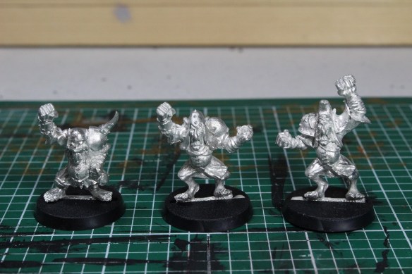 Here are the minis cleaned and attached to bases. Apologies for the Chaos Dwarves in front being a little out of focus. One of these days I will get the hang of taking good pics of minis. There was a bit of flash to remove that anyone used to older Games Workshop metal minis will be familiar with. Mold lines are pretty minimal, and what is there should be easy to remove, which is nice.