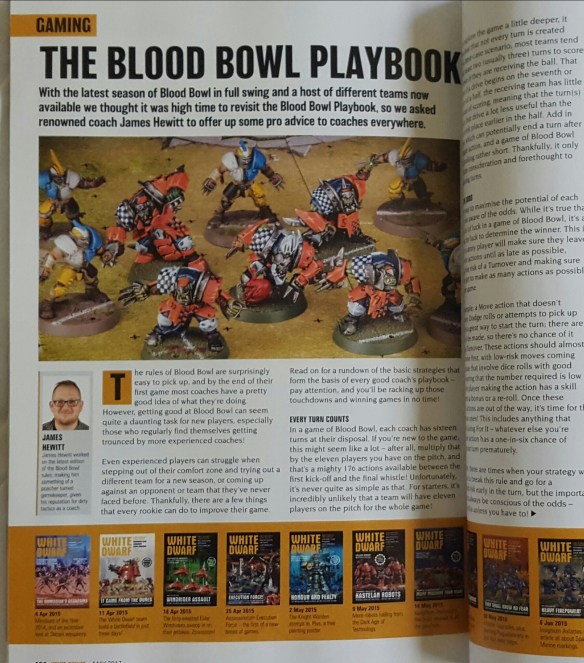 All in all, this wasn’t a bad issue for the Specialist Gamer. It doesn’t hold a candle to last September’s classic issue, but White Dwarf has continued to give support to Games Workshop’s tier two titles and for that I continue to look forward to each issue. I was a little surprised there wasn’t a free Grombrindal fig, not disappointed, just surprised. I’m sure he’ll have a new look in 5 years. Maybe then. The standout for me was the Blood Bowl strategy tips article as probably the most helpful bit and what I’ll hand my son to read before we play our first match.