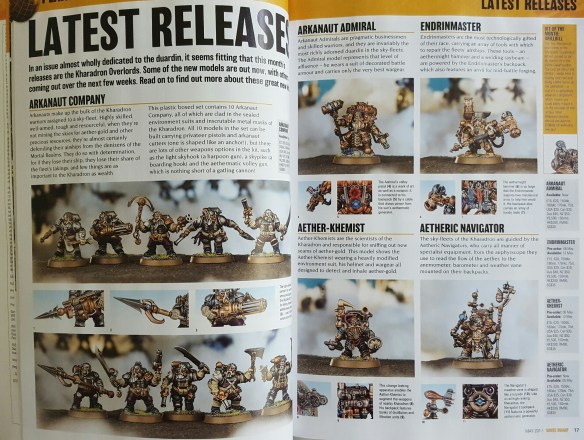 Celebrating the 40th Anniversary is the focus of the May 2017 issue of our favorite hobby magazine. After an extended period away from the periodical, I renewed our relationship last September with the big board game issue reboot. I have been pleased with the issues so far, particularly since the covers now feature illustrations again…something I’ve long missed. My son (10) enjoys this issue quite a bit as a new Age of Sigmar player and relatively new to the Games Workshop hobby. The many retrospectives sort of bought him up to speed with an overview of how White Dwarf began through to its current incarnation today.
