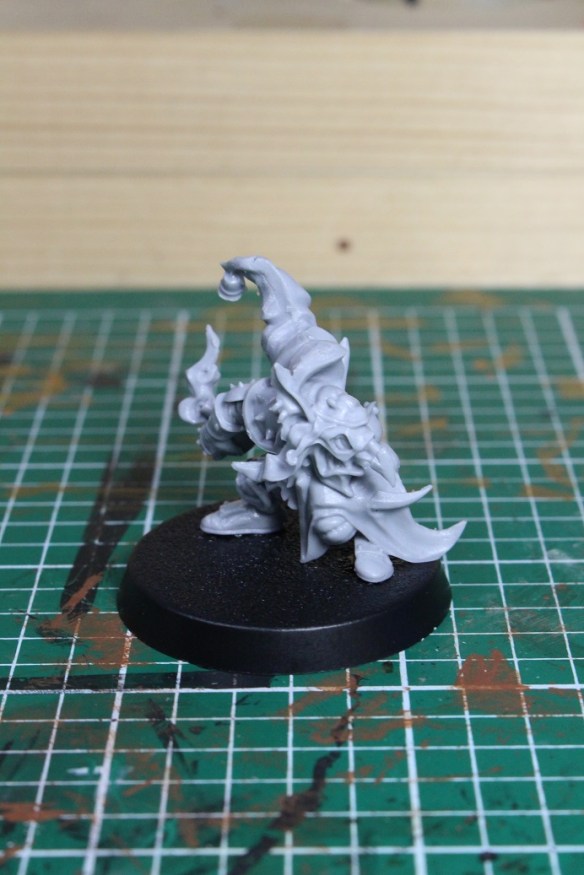Just a little glue and Grombrindal is standing… with BOTH FEET on the base! Woohoo!