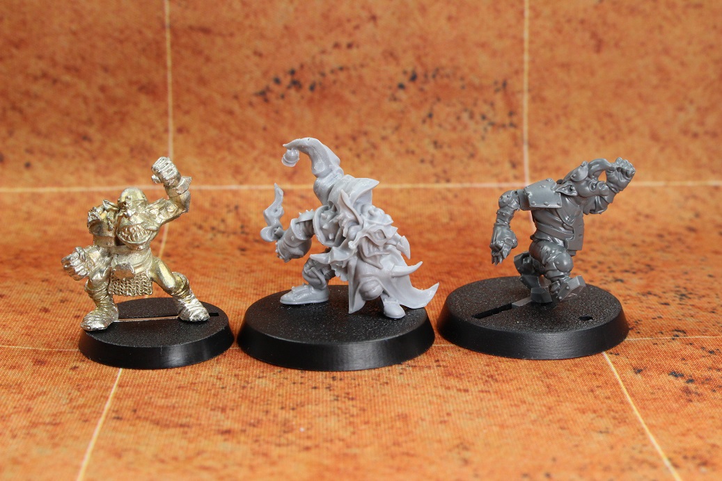 Here is the Black Gobbo next to a new plastic “6th edition” Goblin and a 3rd edition Goblin. The height of all three Goblins is about the same when their poses are taken into consideration. One thing that I thought was interesting, though, was that the Black Gobbo’s head was actually noticeably larger than the new plastic Goblin. Almost all of the new Blood Bowl minis being released are a bit closer to “realistic scale” than the classic “heroic scale.” That means their hands and particularly their heads are smaller and more realistically proportioned than older minis. The Black Gobbo mini seems to be a reversal of that trend as his head seems much closer to the 3rd edition scale than it is to any of the other newer minis coming from Games Workshop. I do not really think that this is a good or a bad thing, just an interesting thing that I noticed…
