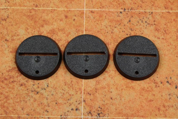 Anyway, all three of the Secret Weapon minis have at least part of both feet touching the base, so I decided to use some spare standard bases I have instead of trying to fiddle with detached base tabs. I gave the pieces a nice, soapy bath and started assembling.