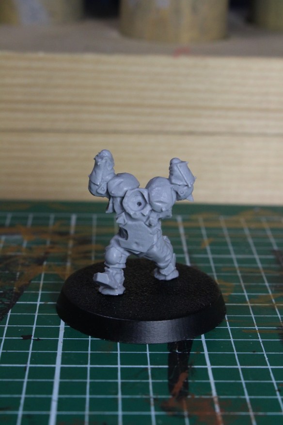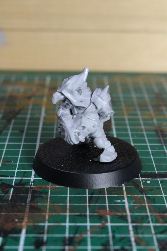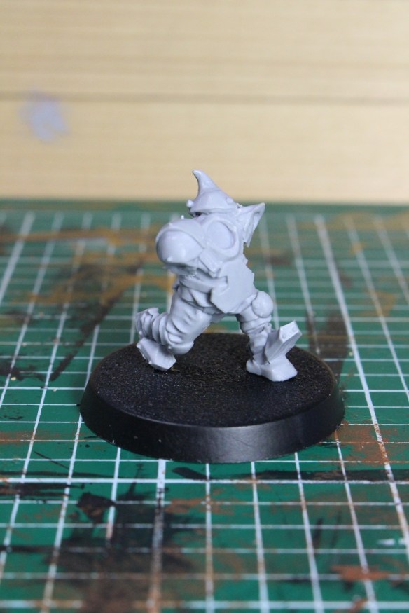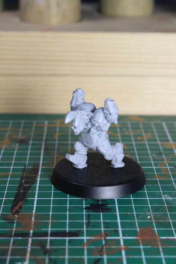 I have to do just a little bit of trimming and filing to get the arms to fit properly, but it only took a minute or two. It was very simple, overall. One mini down already!