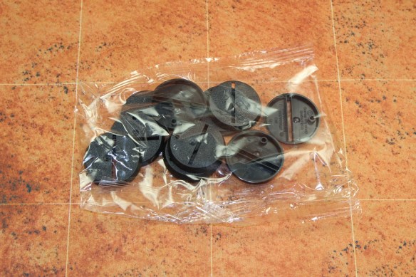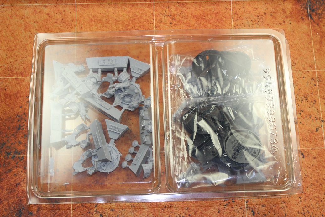 Like the Bright Crusaders box, the Orcland Raiders box also contains a plastic clam shell with twelves slotted bases, as well as the resin pieces to add the Raiders look to the existing minis.