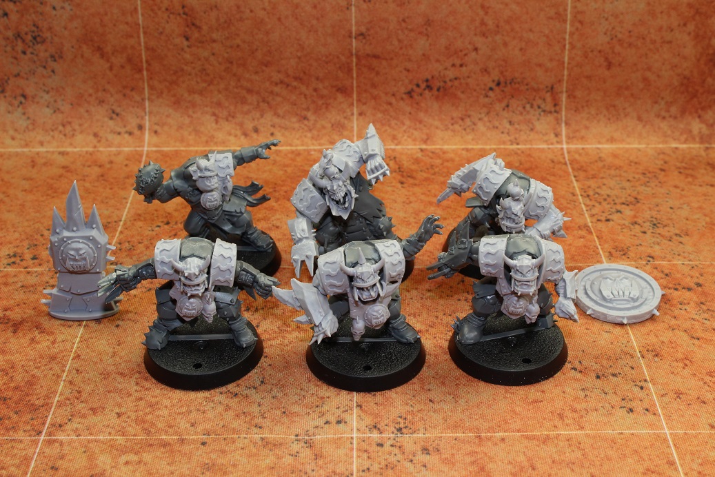 It is with all of that nostalgia in mind that I sat down to unbox and assemble the new (and improved?) Orcland Raiders team from Forge World. As I opened the shrink wrapping, a lot of things were going through my head. Would they hold up to my expectations? Would they replace my beloved 3rd edition team? Would they just be another set of minis gathering dust in my ever growing pile unpainted minis? Only one way to find out! Lets start unboxing…