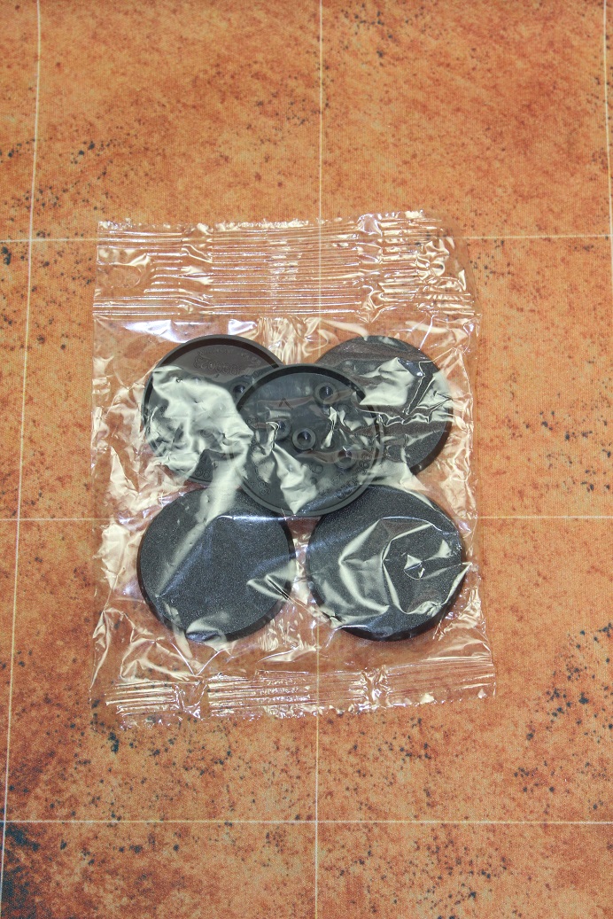 Inside the package, we have five 40mm round bases. Like the Treeman, I wanted to put the Ogres on 32mm bases instead, but unfortunately their stances were sculpted way too wide to fit onto 32mm bases. They pretty much MUST go onto 40mm bases.
