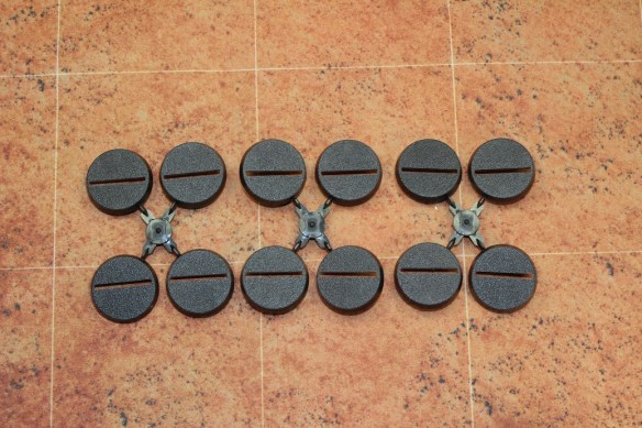 Here are our twelve bases. They are 25mm because that’s what originally came with the teams back in 2nd through 5th editions.