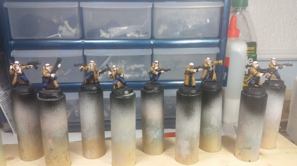 Not much to say, gave my Chaos Renegade team a Zenithal prime tonight. In my previous painting with Zenithal prime I just did black and white sprays, tonight I added a gray spray in between. Fascinating I know. More pics after the break.