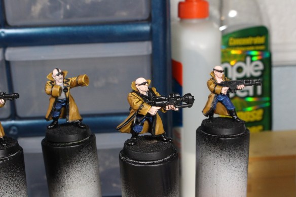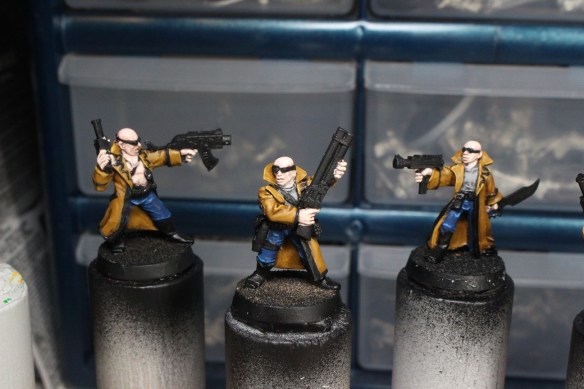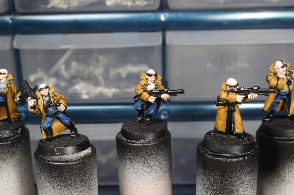 At this point, I have the flesh, shirts, coats, and pants done. I still have things like boots, belts/holsters, goggles, guns, backpacks for the Heavies, and bases to go. I would say that I am probably about 60% done with the gang. We’re going in to a three day weekend, so I hope to get some more painting done in between family time and cookouts.