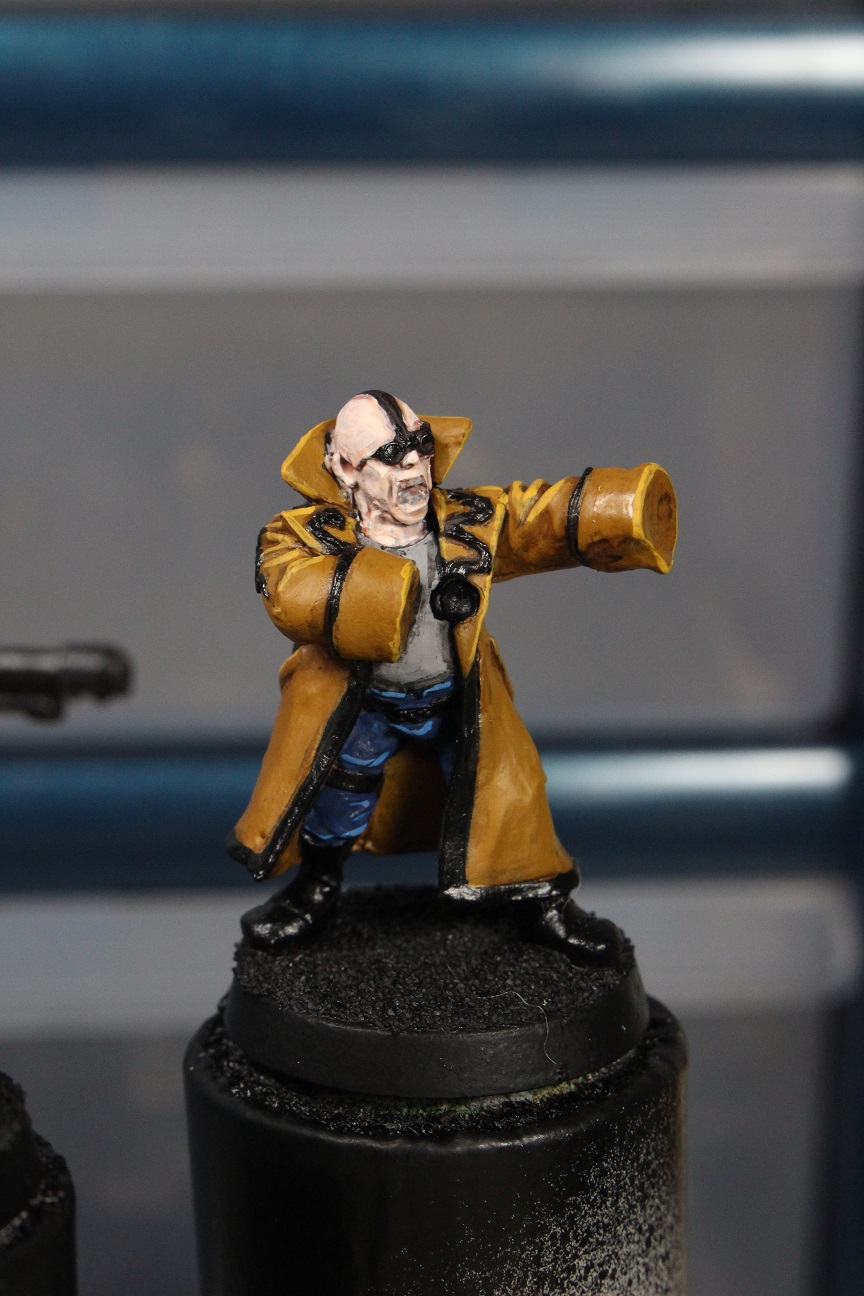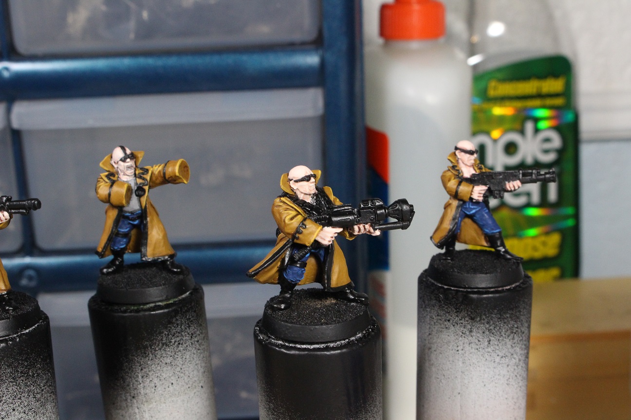 When we left off last, I had only managed to finish the skin and base coat about half of the trench coats with Cobra Leather. I finished up the rest of the base coats, then washed the trench coats with Vallejo Model Dark Brown Wash. After cleaning up a little with the Cobra Leather base color, I did just a few edge highlights with Plague Brown.