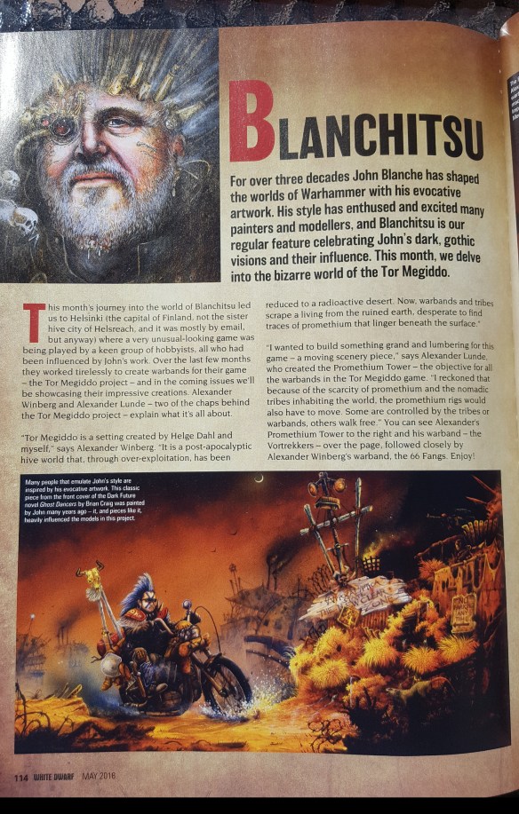 This month’s Blanchitsu features work from a group that has built up a setting drawing inspiration from Dark Future. As a big fan of DF, I appreciated seeing others incorporate that long gone game into their hobby. As usual, the customization of the models in Blanchitsu is phenomenal.