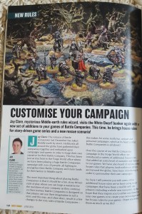 Anyway, we do have a little SG content this month. Lord of the Rings players are treated to an article on running Battle Company campaigns with some nice ideas and tips. There’s also another exclusive to White Dwarf scenario. I wonder if LotR will ever get an accessory or resource like the Open War deck for random scenario creation? I’m not a LotR gamer atm, so don’t know. In the meantime, these free scenarios are great.