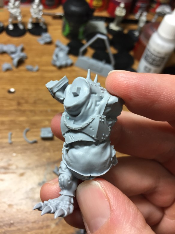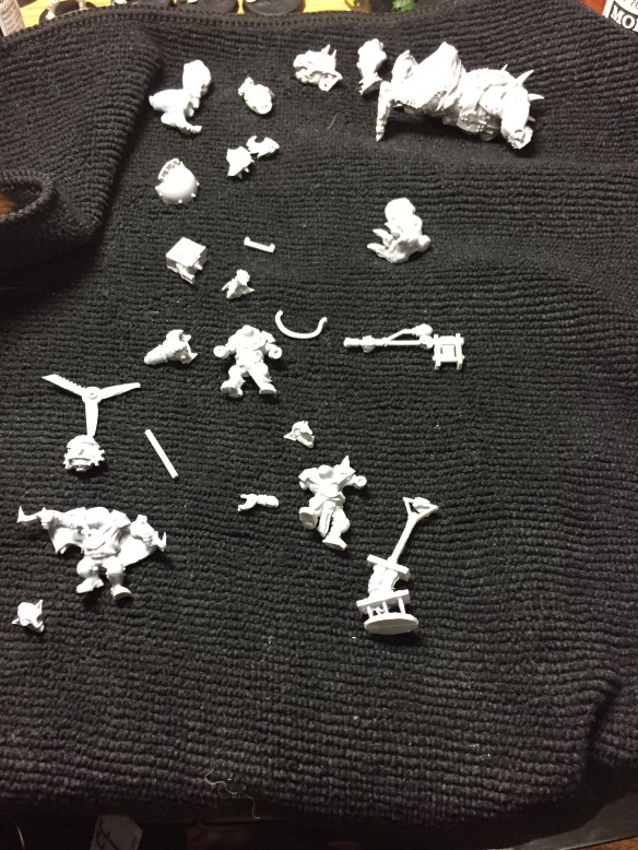 On the troll I found a blue-ish tacky substance that must have gotten into the mold. It was a pain to remove and I was never able to get it all out on his back. There was a spot of the same kind of stuff on the goblins but it was yellowish. I’ve never encountered anything like this from Forgeworld before so I’m at a loss at what it is. It did mess with the molding of the trolls back a little but I think I was able to clean it up enough. I didn’t remove all of it as I didn’t want to end up with a hole in the trolls back. Time will tell if it will be an issue. Moving on!