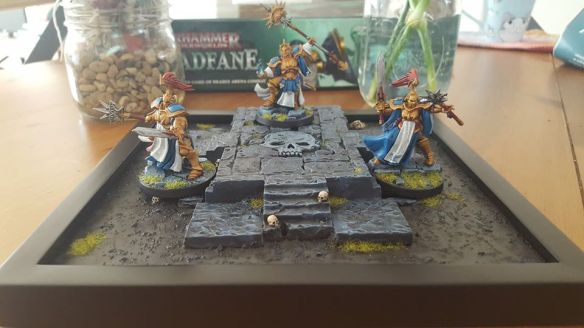 Unfortunately, I don’t get out to many Warhammer Underworlds tournaments, but for games I really enjoyed, I’ve always liked have a little display base for my models. Nothing fancy, just something big enough for a warband or team’s worth of figs. Living in a smaller home, storage is an issue, so making and storing something like a display base has to take a few things into consideration. Namely… a low profile. Fortunately, a friend had a spare Arcane Ruins set which provided exactly what I needed.