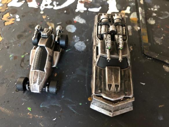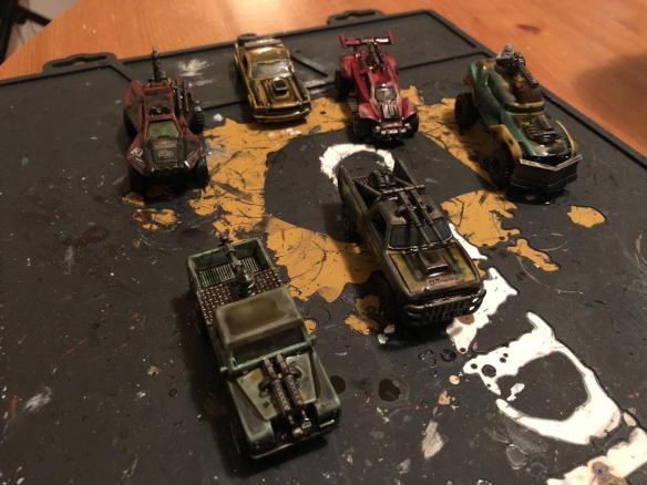 A wash of Nuln Oil over the factory paint job and to be honest….one could have probably just stopped here and have a fine set of cars for tabletop play.