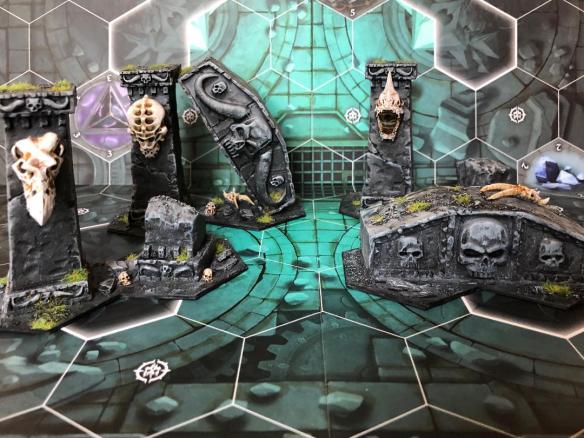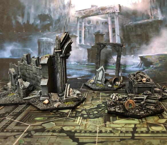 One of the main things I like to be able to do when getting into a game is be able to provide all the bits necessary to host a few tables. By host I don’t mean to just have the bits available required to play, but to have tables that can immerse the players into the setting as much as possible. A game like Warhammer Underworlds doesn’t have a lot of the 3D features you see in the more traditional minis games as it’s pretty much a board game. However…there are blocked hexes and these can provide that little bit of dressing to represent models slinking about the ruins of the Mirrored City.