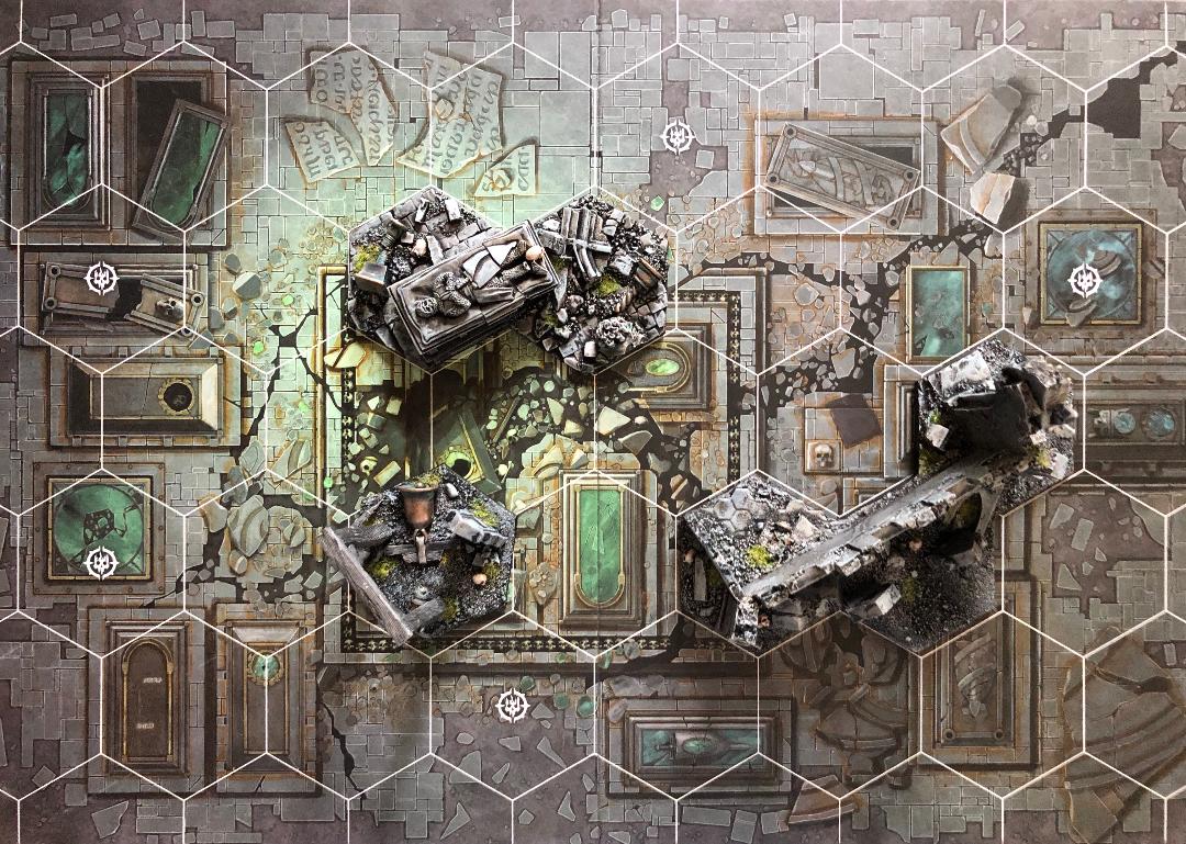 Now, here are two boards that came out with the following set, Nightvault. These aren’t bad, but there’s a big difference between these and the boards above. ‘Big’ being the key word here. The Nightvault boards look to have been designed under different art direction or something.The visual features are…larger, less detailed. Compared to the Shadespire boards, these look like they were drawn with those fat crayons used in primary school.