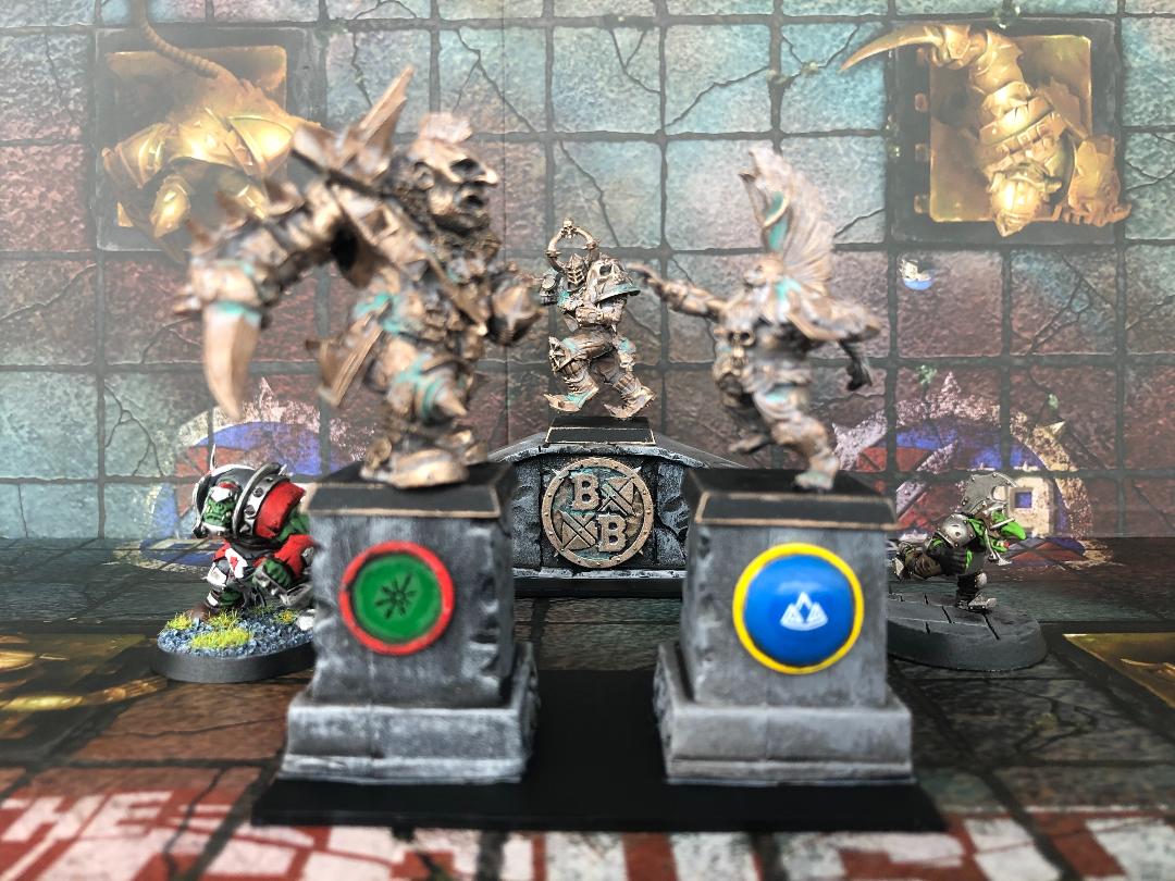 With three Blitz Bowl (BzB) boards, I wanted enough terrain for two boards to have fancy statues celebrating the star players of Blood Bowl. I’ve gotten a lot of comments about using the expensive Forge World models for this project, but having played Blood Bowl for almost three decades…I’ve rarely used Star Players. This project has enabled me to finally make use of some of those models and in a way that will get them on the table _every_ time a game is played. This is actually more bang-for-the-buck then using them as actual star players where there are too many gates for their usage; will I be playing their team, will I earn enough to use them, does the league allow them, etc.