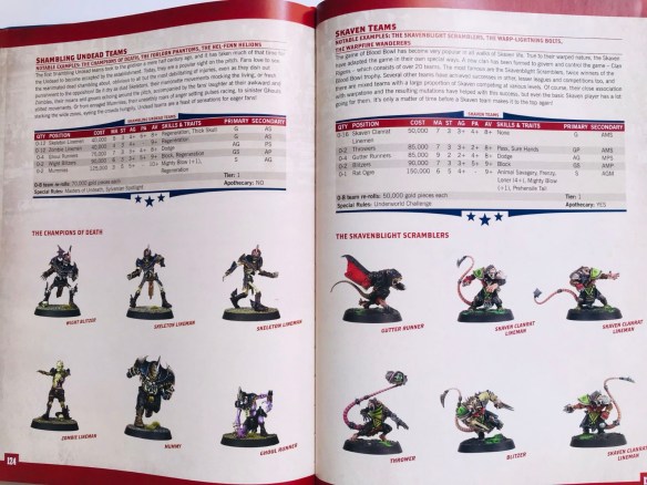 There’s some more changes to skills like claw and mighty blow, those were bound to happen in a new edition. There’s changes to the kick off and weather tables, and that’s all pretty minor too. That’s to be expected.