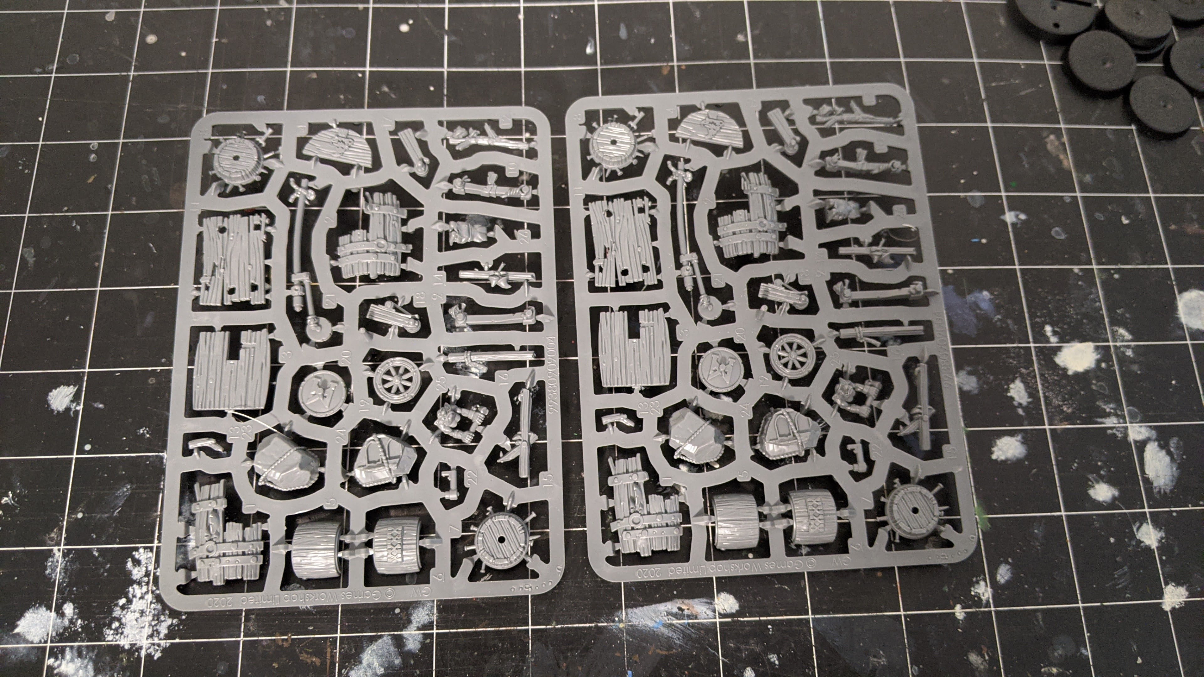 And finally, what you’ve all been waiting for, the bases. There’s only two of the normal Blood Bowl bases here and those are for the pump wagons. The snotlings go on 25mm bases because they’re so tiny. There’s over 20 of the 25mm sizes though so you should have some spare. Now that’s got me wondering if the gnoblars from the ogre kit go on 25mm bases as well … hmm.