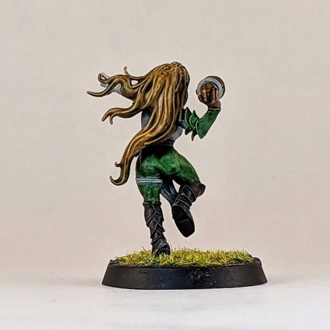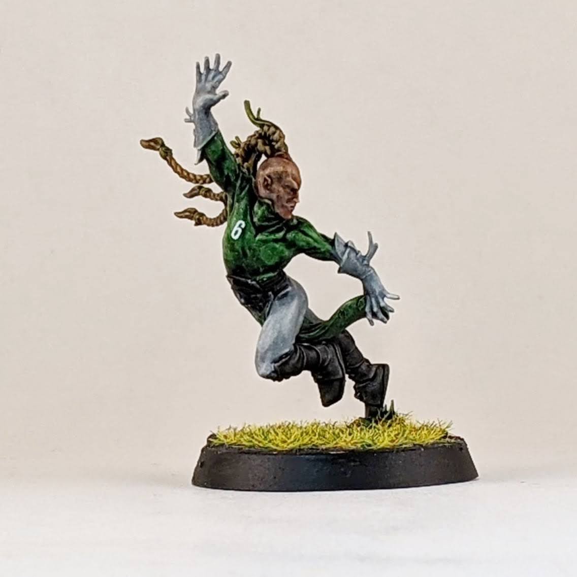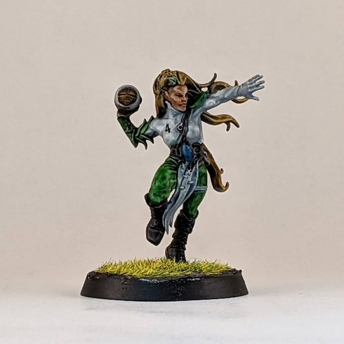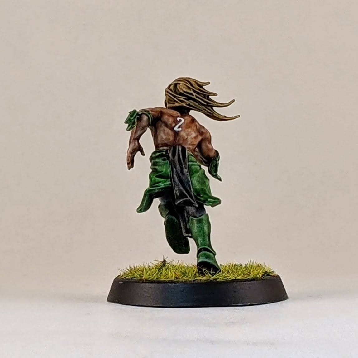 I also made a Willow Rosebark conversion. I’m lukewarm on the Forge World model, it’s ok, but it doesn’t look like the concept art in the BB16 books or this character. For my conversion I used the body of an Age of Sigmar dryad with the addition of Blood Bowl wood elf arms, I think one is from a wardancer and the other is from a lineman. I also included a shoulder pad and a facemask from the Blood Bowl kit to help tie her into my team and to stand out as a sports player and not a fantasy forest spirit.