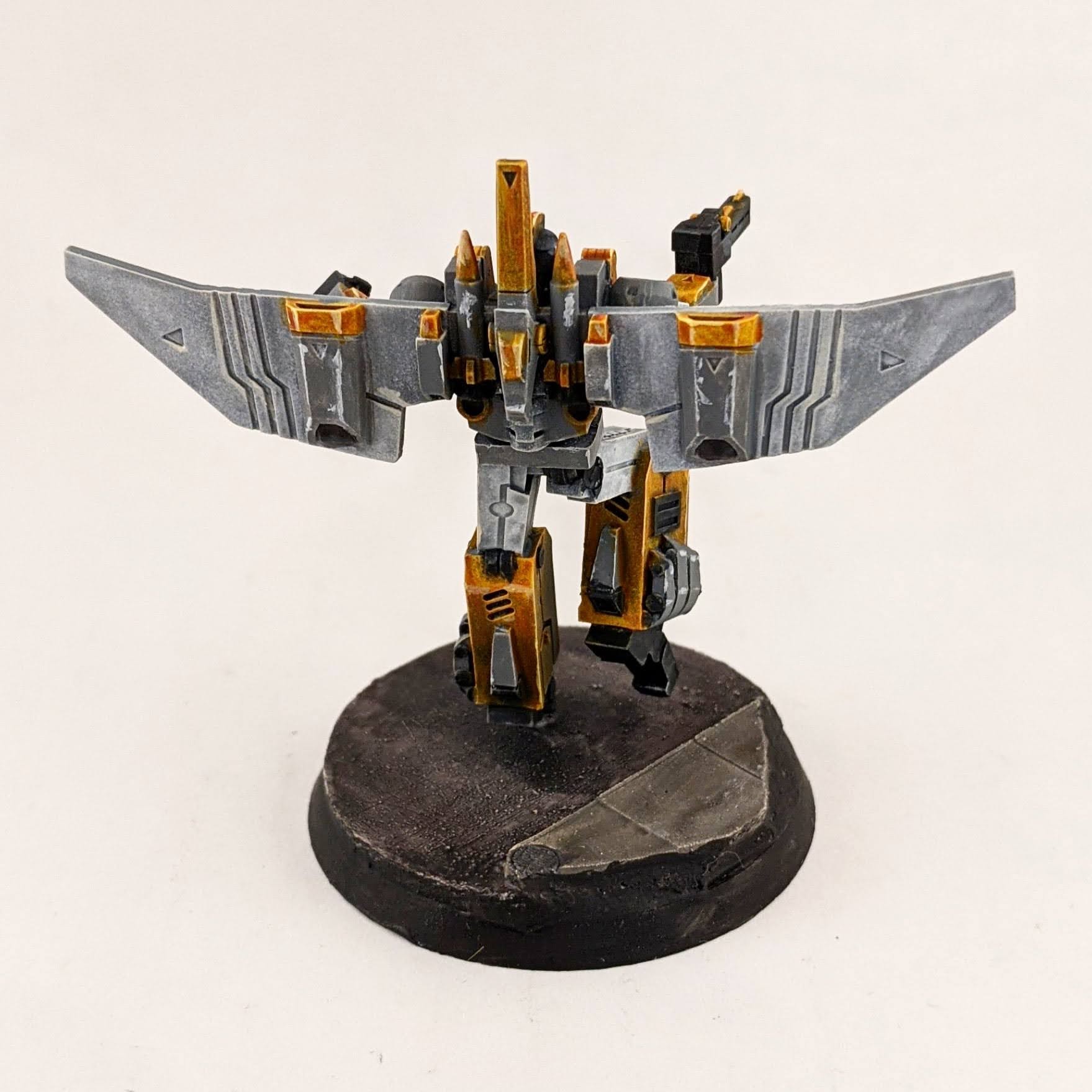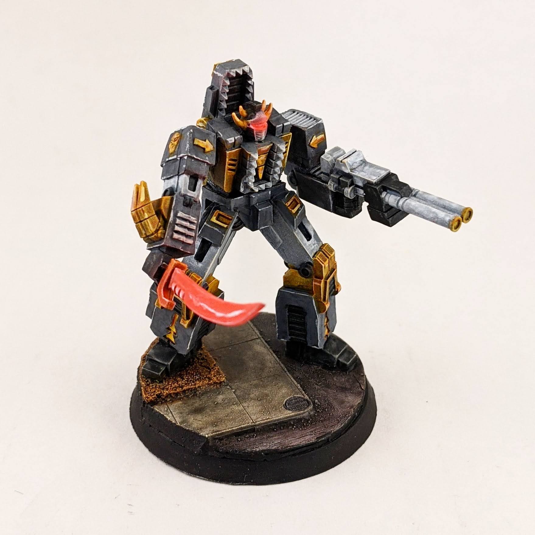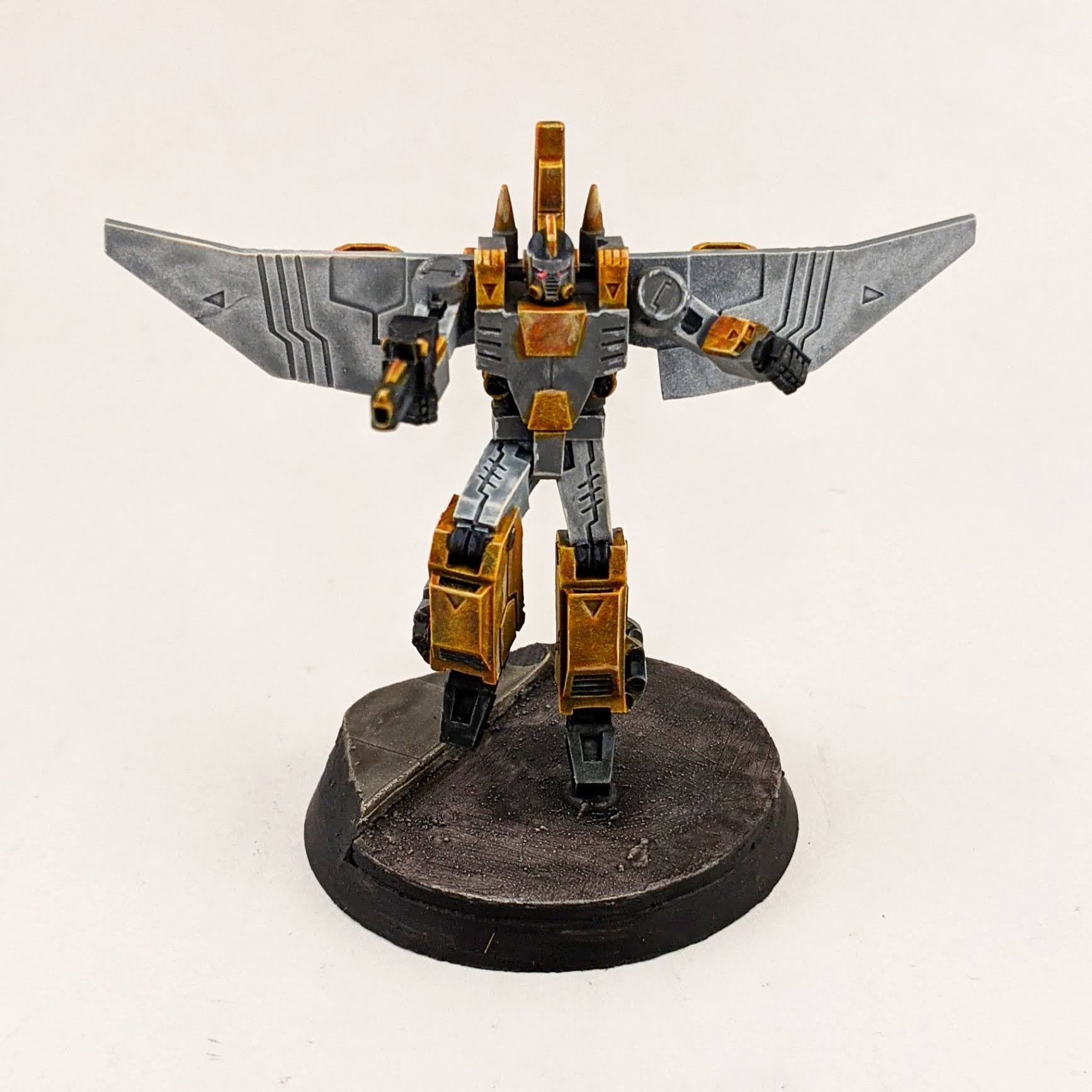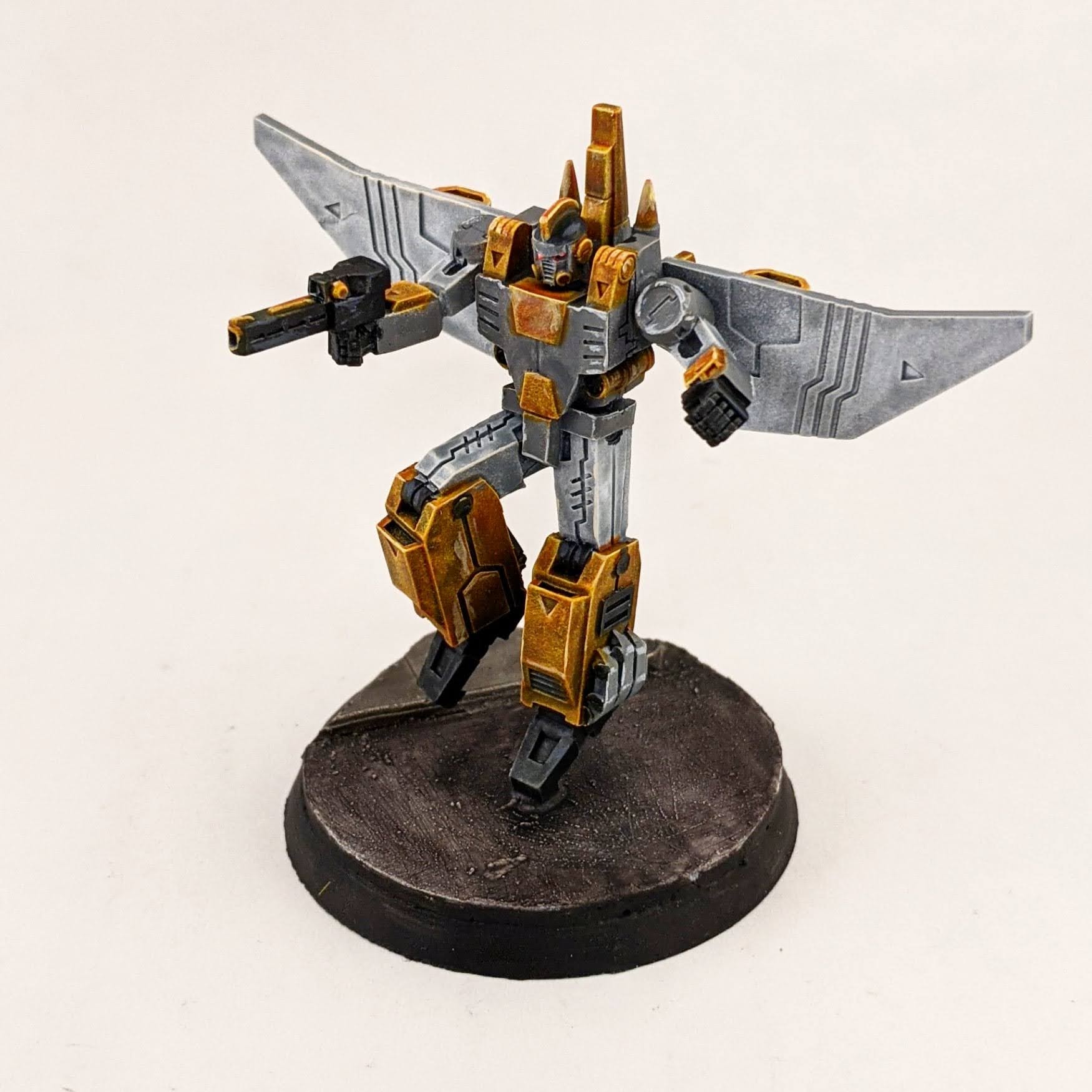 Bot War is a skirmish game at 10mm scale, which is a bit of an oddity. 10mm is a scale where you expect to see massive battles take place on a small scale, but when you’ve got giant robots on each side you don’t need quite so many models. Some of the factions do indeed feature troops and vehicles at this scale and some are just robots and some are a mix of both. I have a preference for elite factions in games because it means buying and painting fewer models. This, combined with my love of dinosaurs and Transformers as a kid steered me to the dinosaur robots the Beastlords! There are seven models in total for this faction, but I started off with just these three to get a taste for the game.