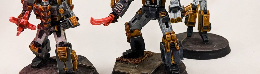 Yes, my headline is trying to avoid a cease and desist from litigation-happy lawyers from big toy companies. Bot War by Australian indie company Traders Galaxy is a game I’ve had my eye on for a year or so. I no longer remember where I first set eyes on this game, but the 1980s not-Transformers aesthetic immediately hooked me. The game and minis series is heavily inspired by the action cartoons of the 1980s all mashed up together. There’s references to Transformers, GI Joe, Dino-Riders, M.A.S.K. and more. The creator of the game has clearly had a lot of fun creating his own world by throwing all these influences together and letting them stew. After watching the game from afar for months, I saw a friend of mine join the Bot War Facebook community and I knew this was actually going to happen and we bought into the game.
