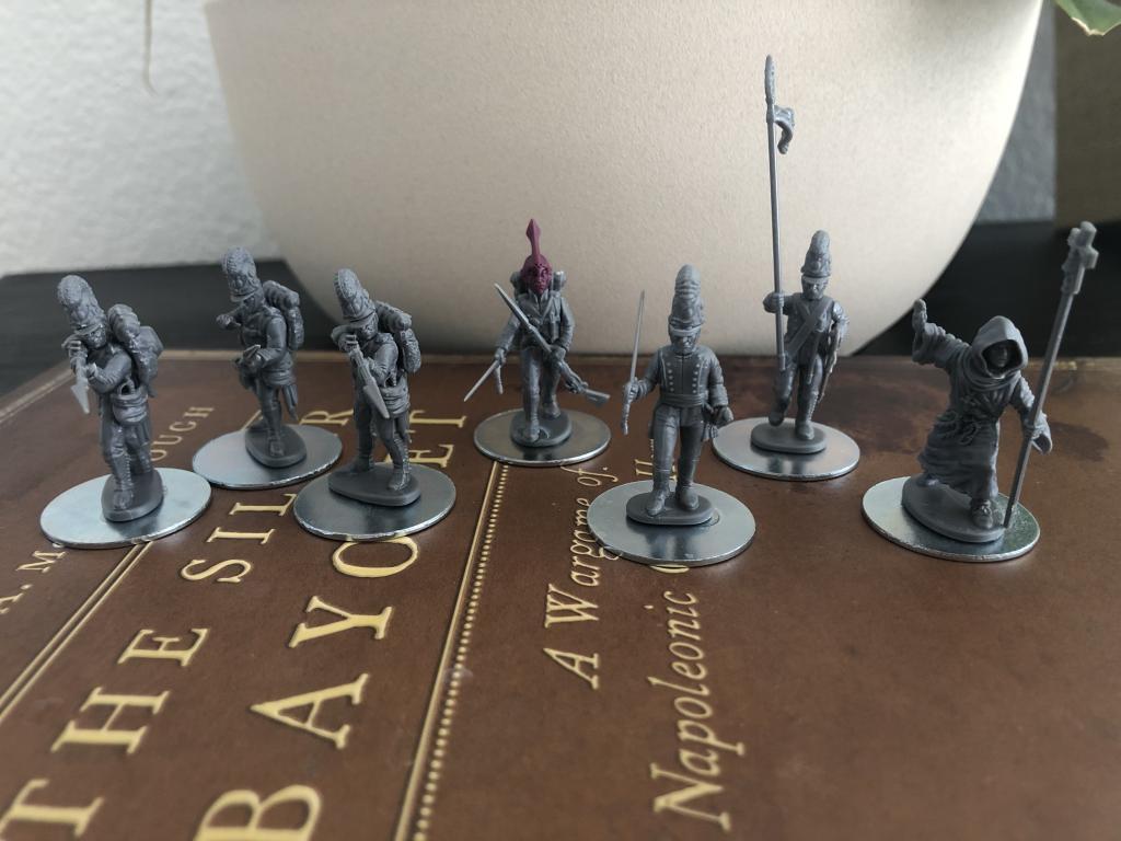 Initially, I wasn’t too interested in the Silver Bayonet, but I recently met some local gamers who were getting into it pretty heavily, so I figured why not do up a little unit and join in? Using the Victrix Bavarian models (with the Austrian unit list) I wanted the unit to have more of napoleonic army special unit look. The official models look more like generic gothic warband to me.