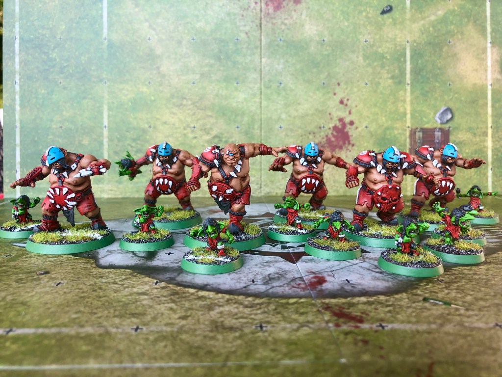 Several years ago, I got pretty invested in Mantic’s Dreadball. I still miss that game from time to time, and consider it the “one that got away” as it were. Most of all I miss my Zee team. They’re made up of cloned space monkeys and generally considered the worst performing team in the game (as of 1st edition). With the Ogre team being considered the lowest Blood Bowl team, I thought this would be the perfect time to revive those old Zee colors of mine.