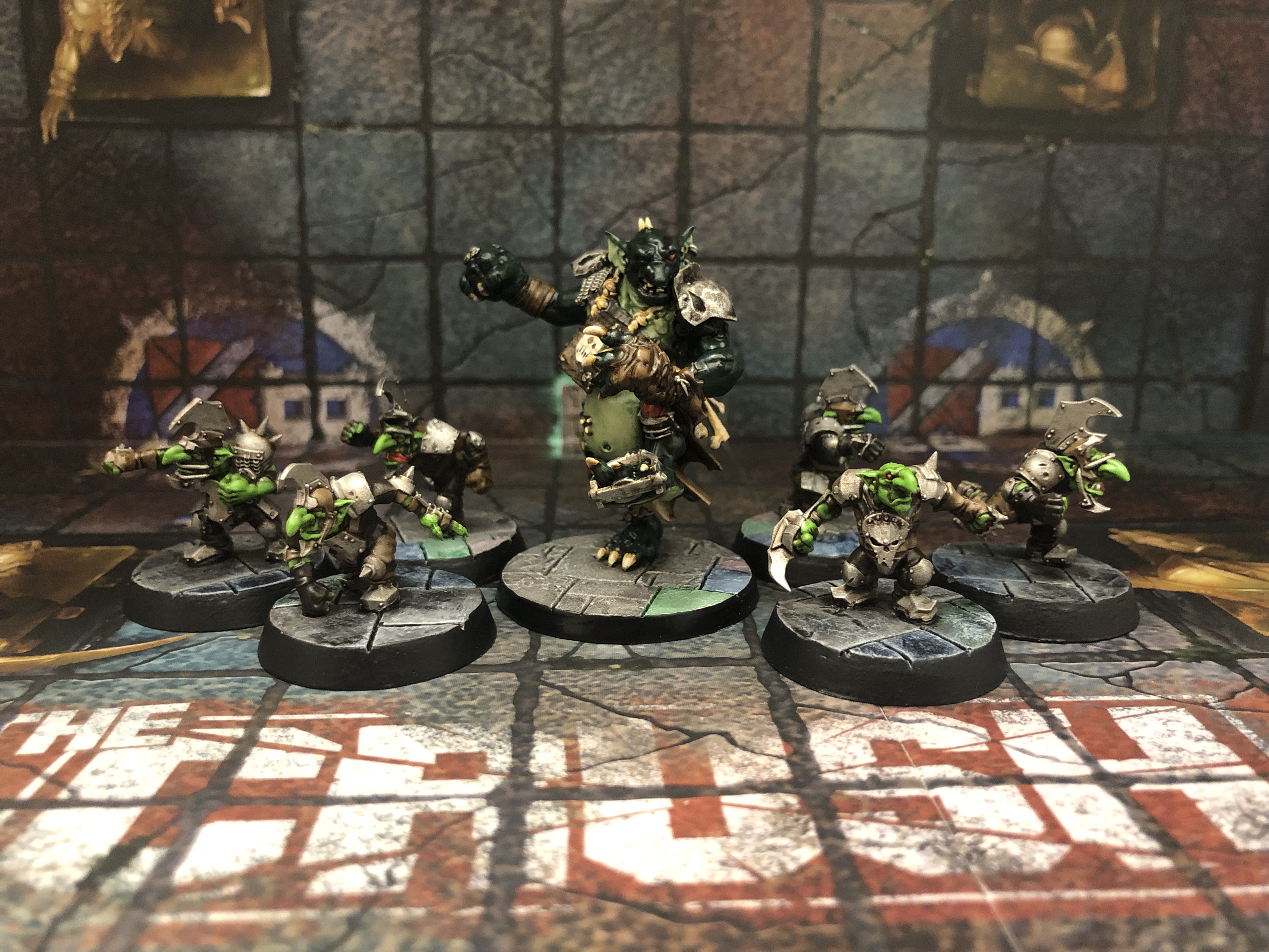 As a squad, I really like how they came out. Initially, I went different shades of browns for the goblins as I figured whatever entity was bankrolling this team wouldn’t put too much backing into it so the team would be a mish-mash of boring colors. Taking them all in though, the brown and greens really compliment each other. On the troll’s wooden sign, I tried to freehand a few things on his wooden sign… “Get Uglee”, “Spug”, an anarchy symbol… it all looked like trash. Had to go with a transfer.