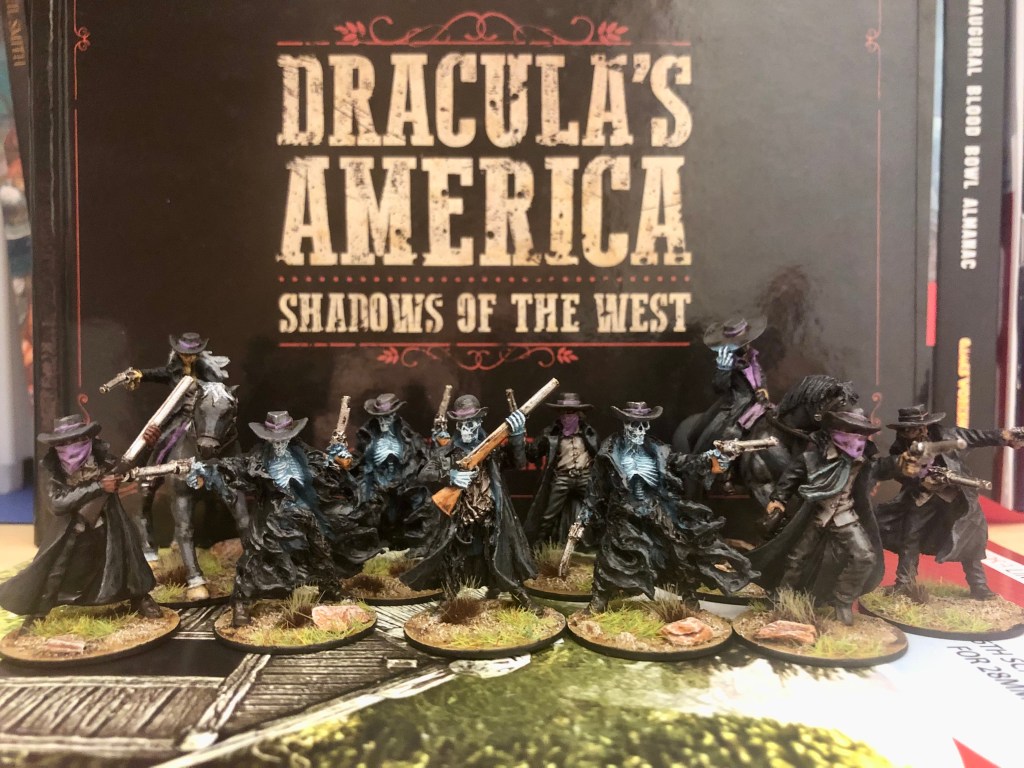 One more photo, to include the mounted versions. Future additions to this posse will probably include some hell hounds and a demon so they can flex into the Crossroads Cult gang as well. Maybe in the posse’s narrative, the Necromancer is delving deeper into the rings of hell and summons that which should not be…