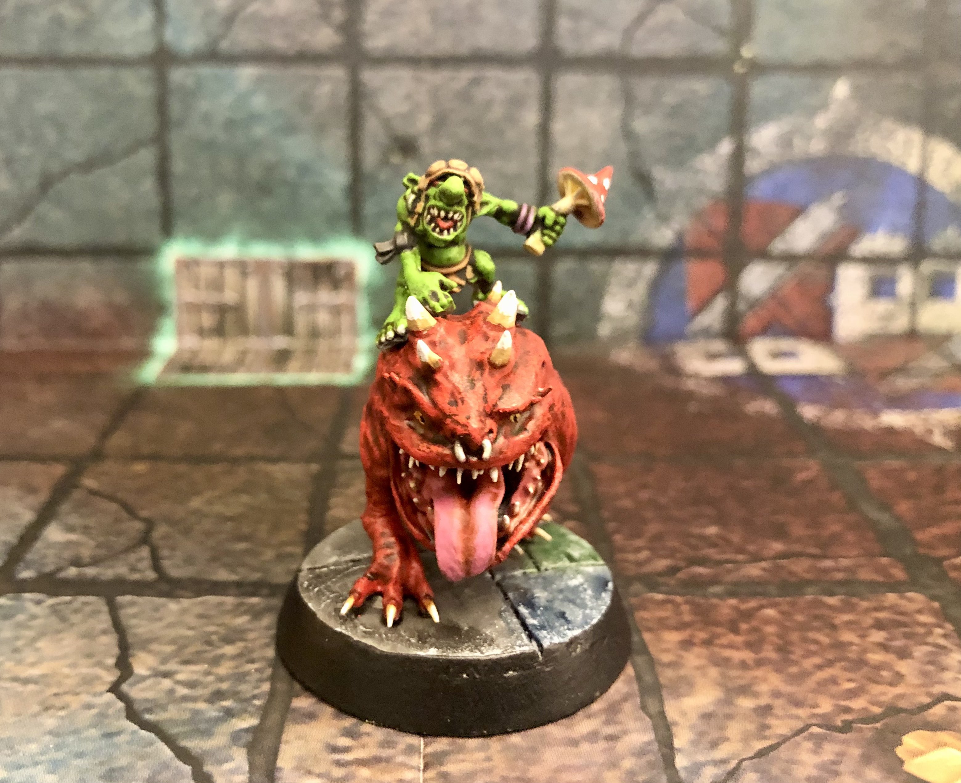 Last year’s Dungeon Bowl expansion, Death Match, came with rules for a room with Werewolf that could move around the dungeon and attack players. I didn’t really feel like a werewolf was as fitting to an old school Warhammer Quest style dungeon, so I’ve opted to use a squig riding snotling in its place.