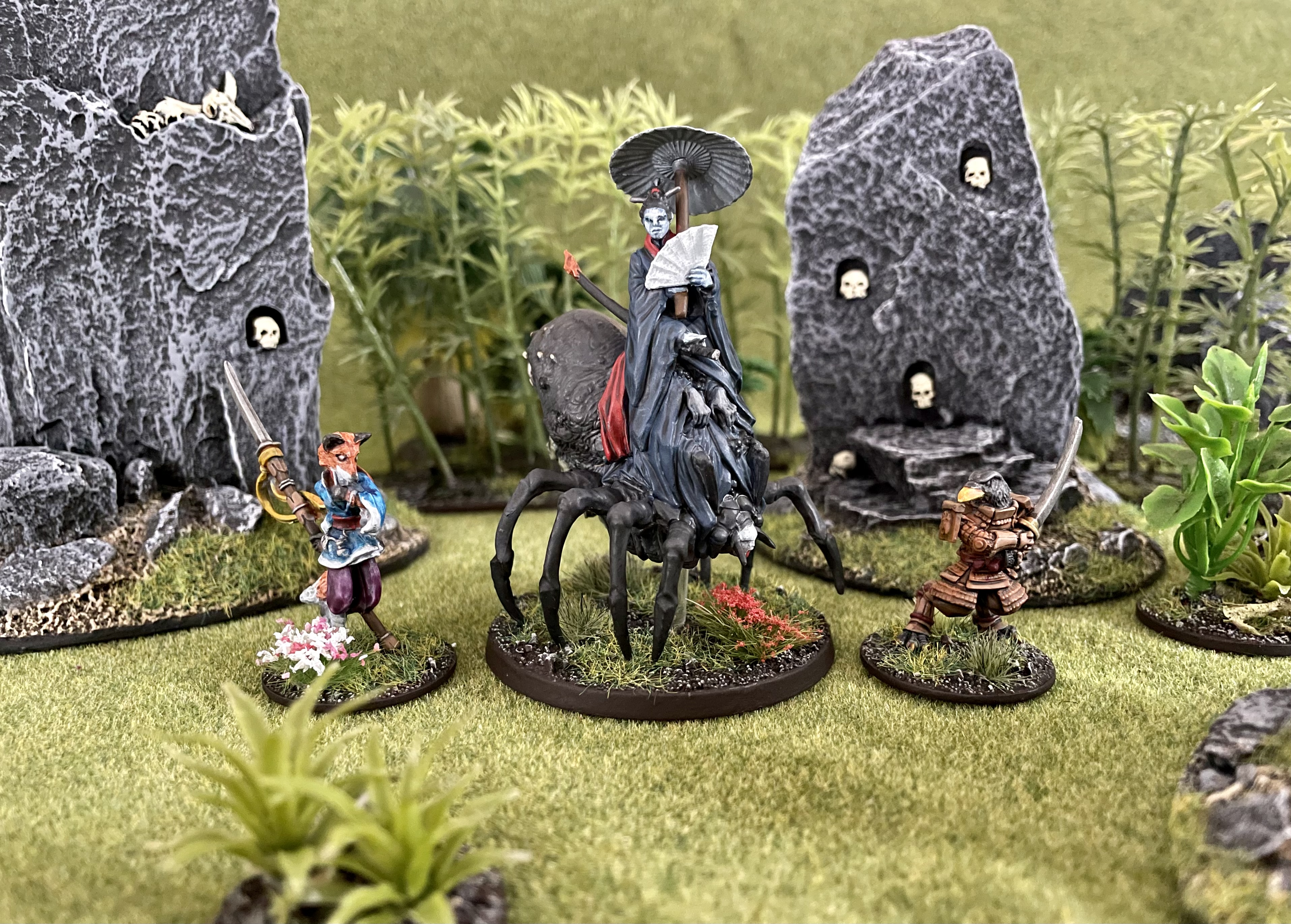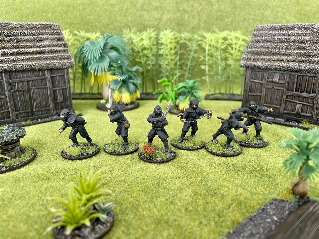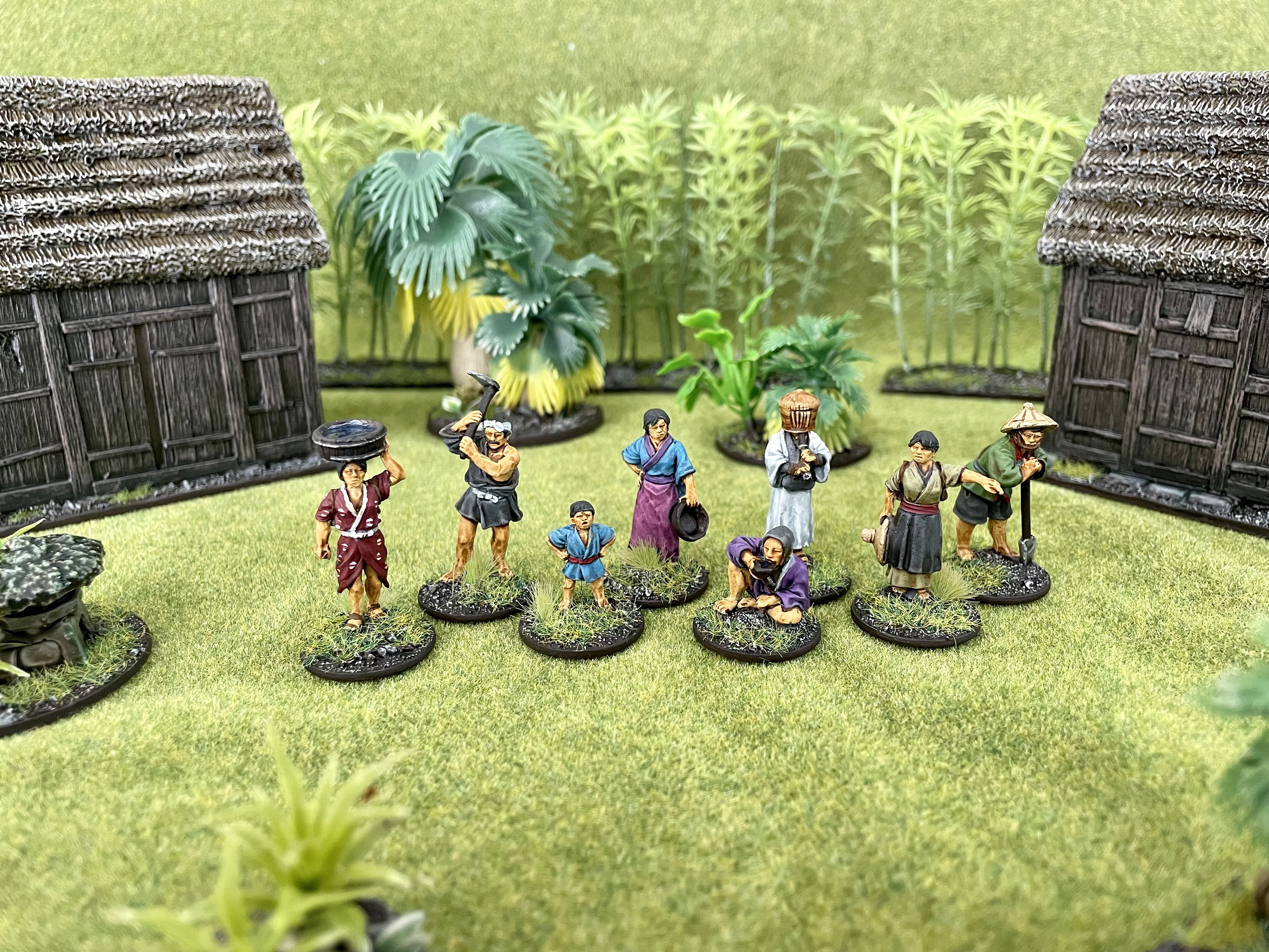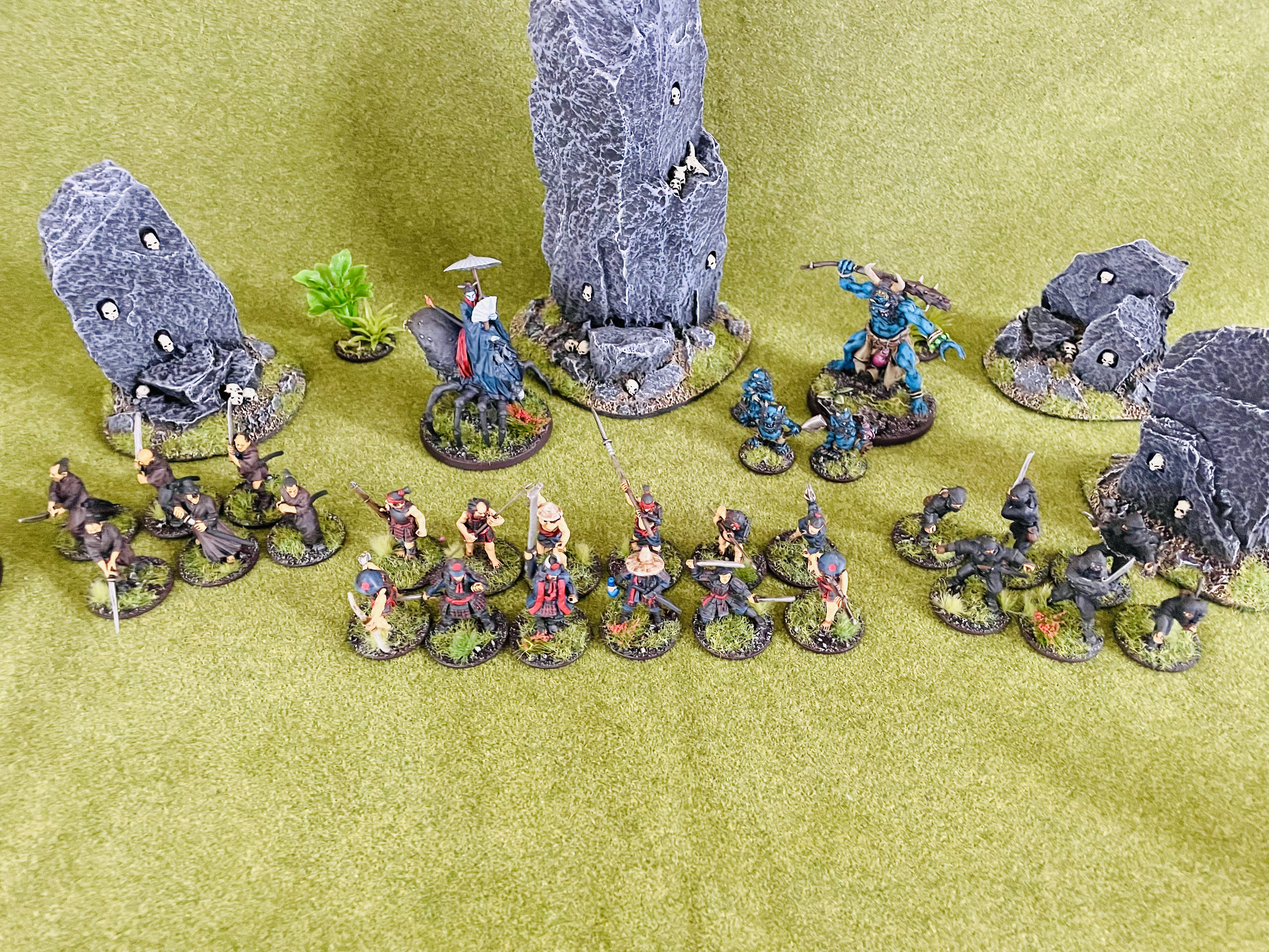 After the Bandits, the Koryu, and the Ninja, I’ve now got a fourth buntai… the Sohei. Usually, I prefer to create and employ my own colors for factions, so this may be the first time I’ve simply gone with the faction colors as presented in the rulebook’s samples. I kinda like the black and white Sohei model in one of the pictures in the Ronin rulebook, but my other three factions are in darker colors, so for these warrior monks, something colorful to contrast was ideal. The traditional orange and yellow work. I used AK colors with a Seraphim Sepia wash for shading. not a perfect shade, but works for me!