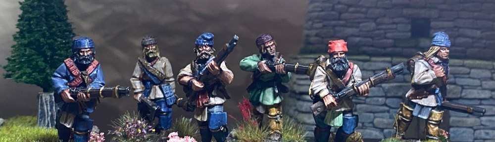 I did refer to some online resources for the uniform parts to make sure I wasn’t completely off the mark.  It’s possible in the future these soldiers may get drafted into full warband, so I wanted to keep a hint of former professionalism. The Albanians on the other hand I tried to go with some brighter colors to get them to stand out from their peers.  From the pictures I found they were portrayed with mostly bright clothing with a lot of patterns.  I wasn’t about to free hand that but I could handle some more catchy colors.